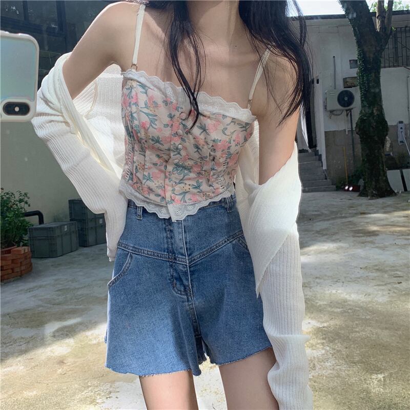 フローラルトップス ノースリーブレディースサマー薄手ショート 大人ガーリー スウィート キュート カジュアル 夏物 花柄 1号婦人70416480452