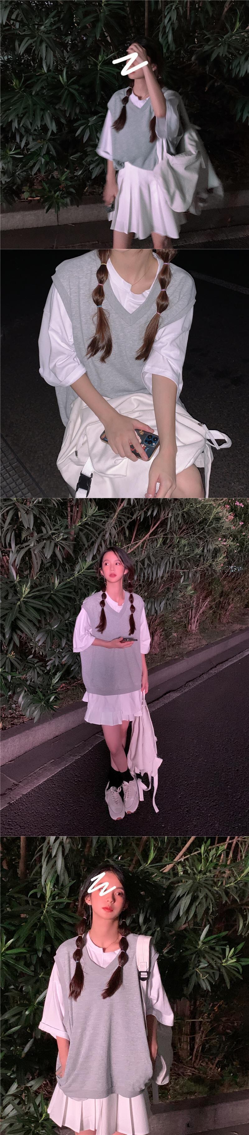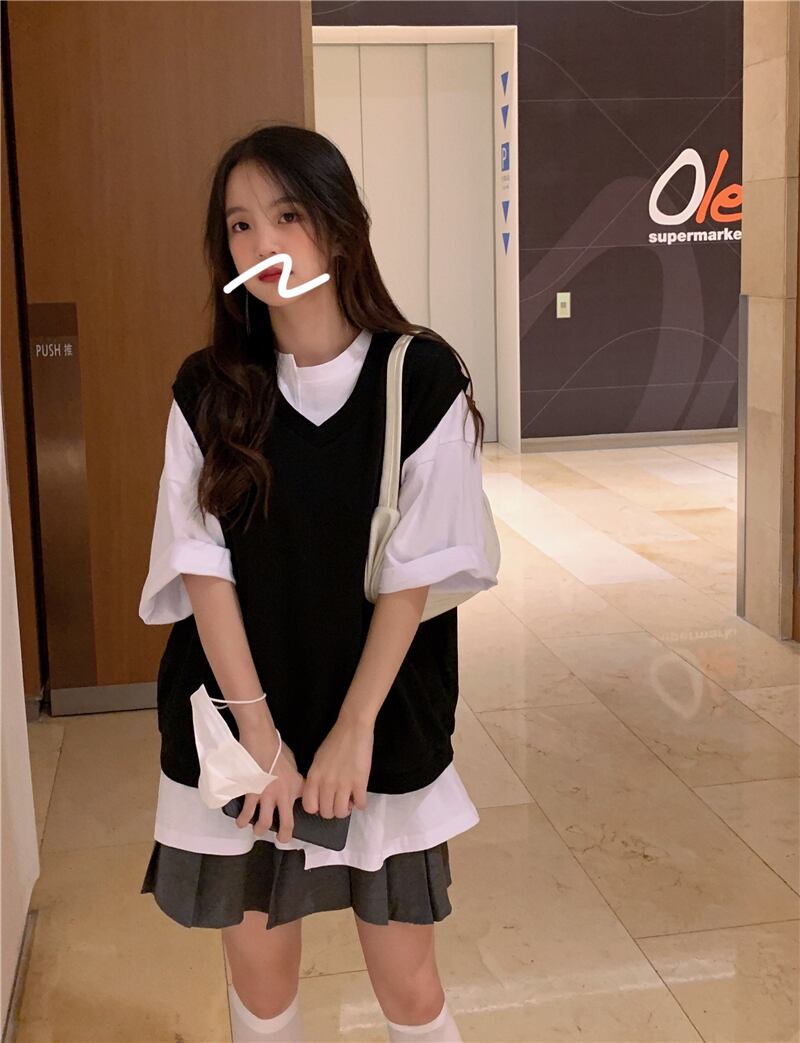 色:黒のベスト,グレーのベスト,Tシャツ,グレースカート,白いスカート