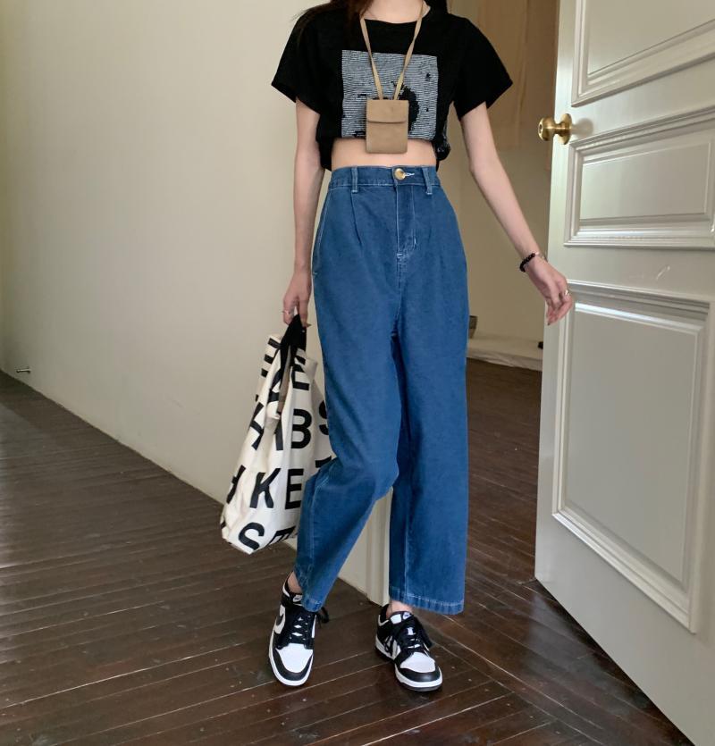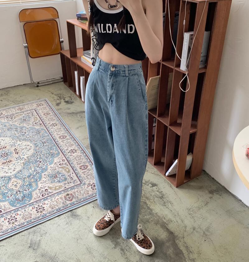 ジーンズ サマー薄手ハイウェストウェストロングパンツ 夏物 1号婦人59919035369