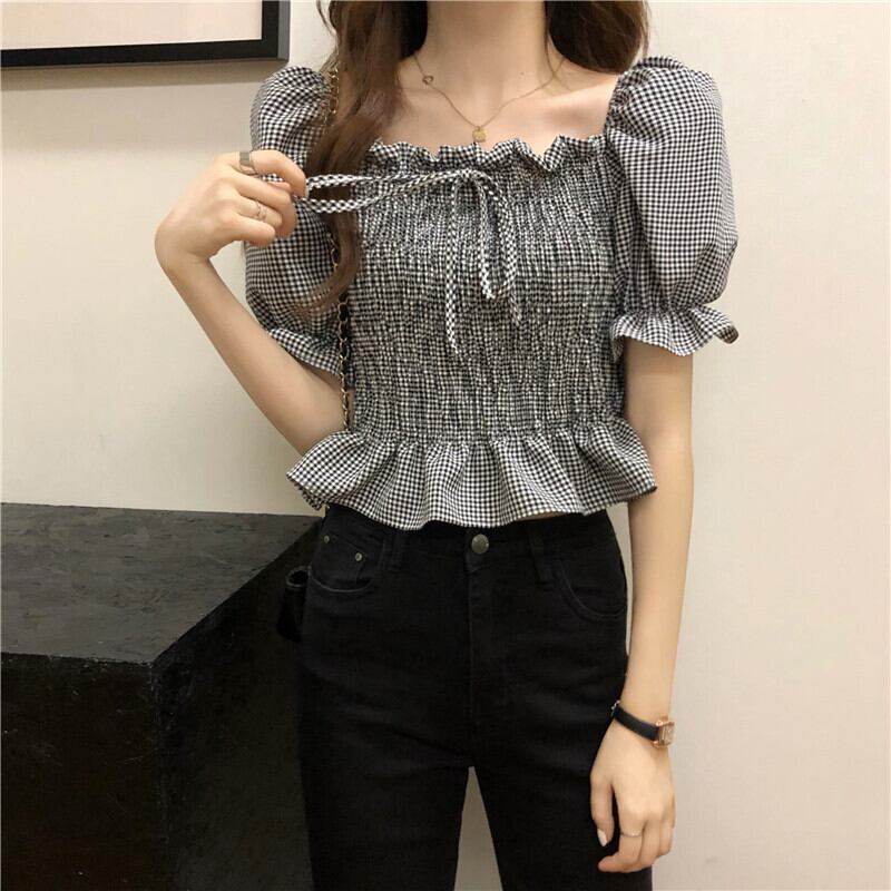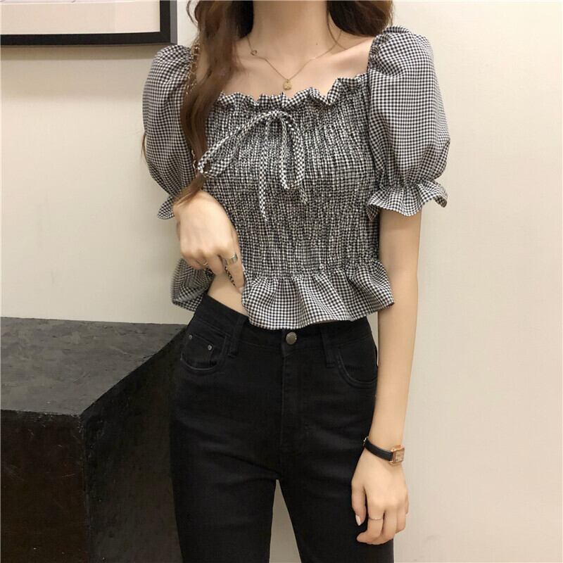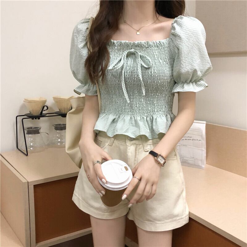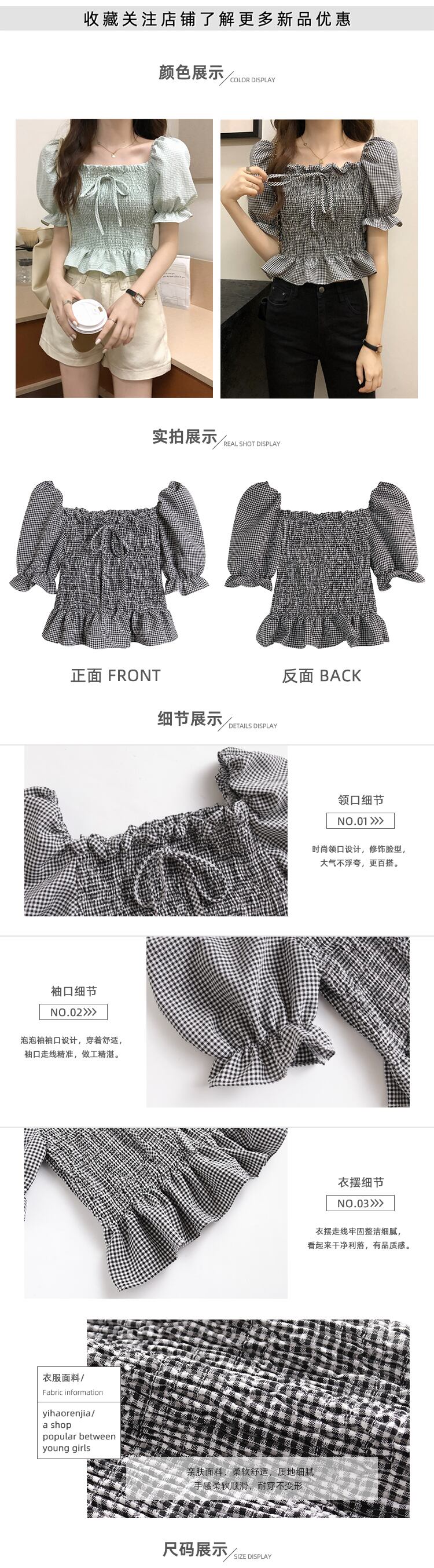 ショートスリーブシャツ レディーススプリングサマー格子柄カラーウェストトップス 春物 夏物 スクウェア 1号婦人89089983793