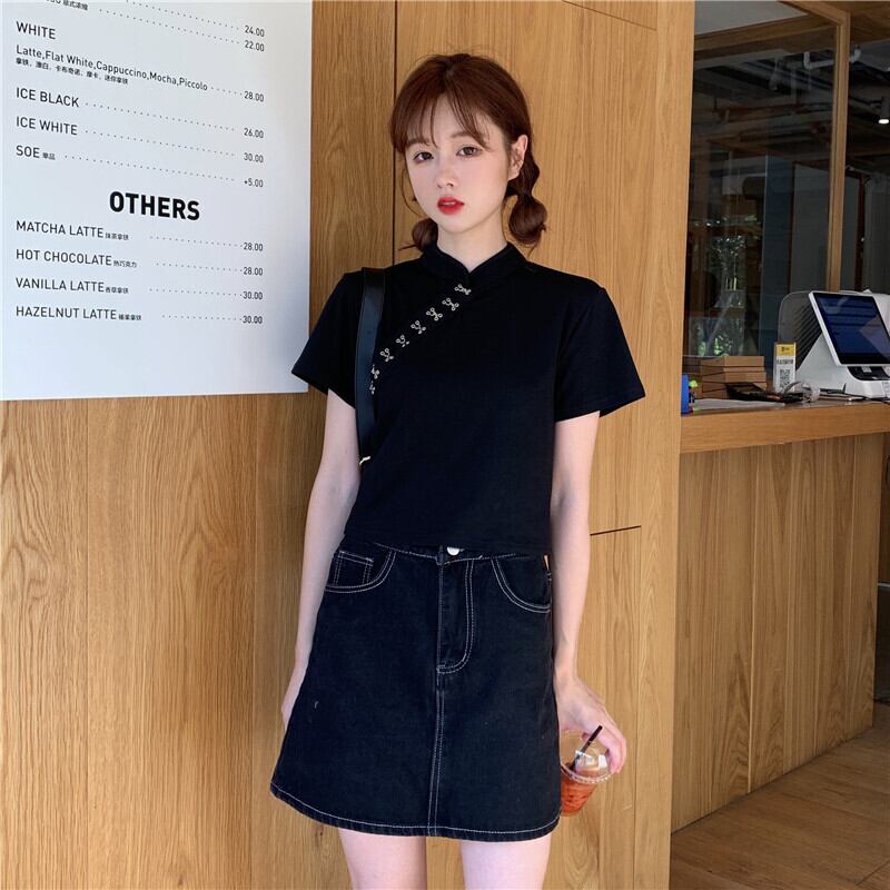 スタイルトップス サマースリムショートブラックTシャツ 夏物 1号婦人21628617354