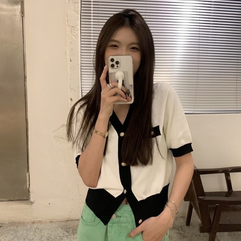 ニットセーター 薄手サマールーズカラーカーディガンVネックショートトップス 夏物 1号婦人83021927697
