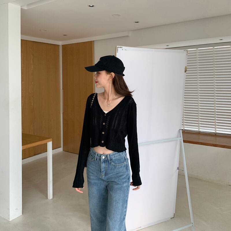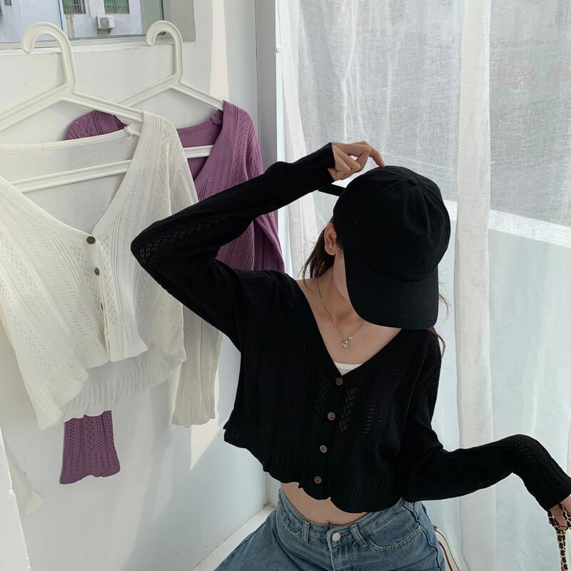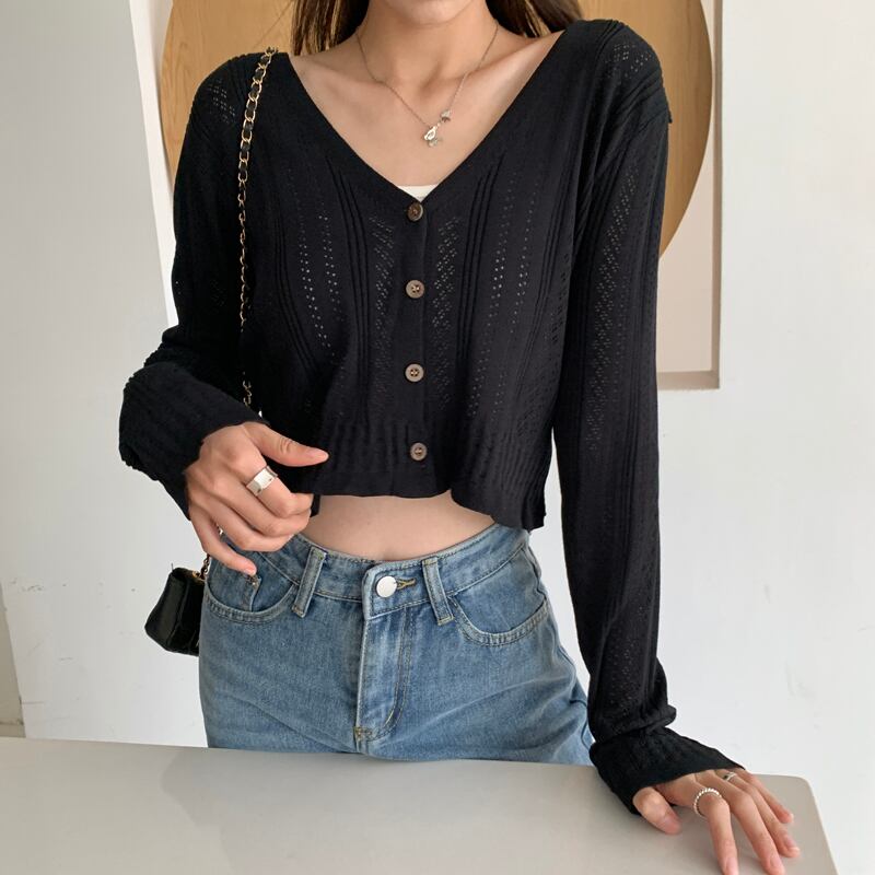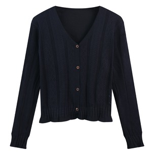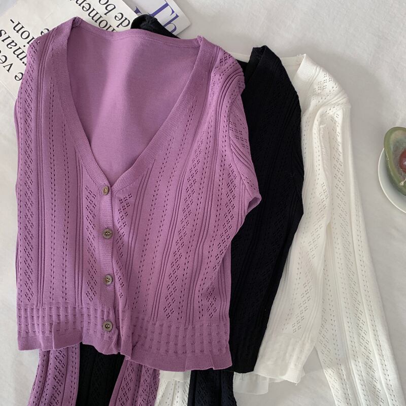 スプリングサマーニットカーディガンVネックシャツ ショート薄手トップス ロング 春物 夏物 1号婦人56149773659