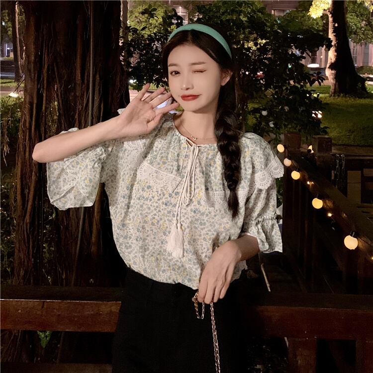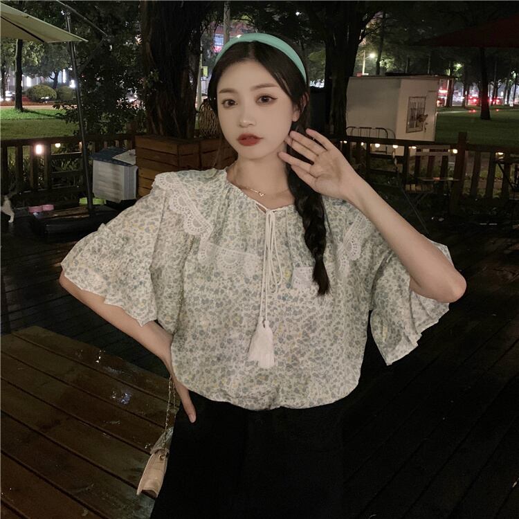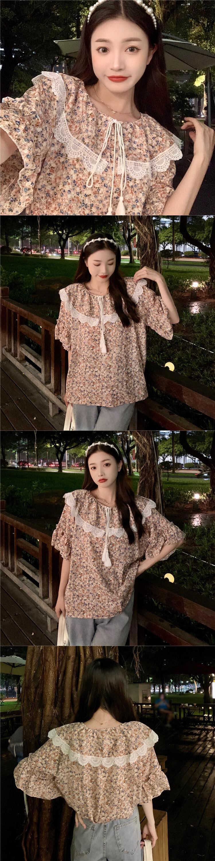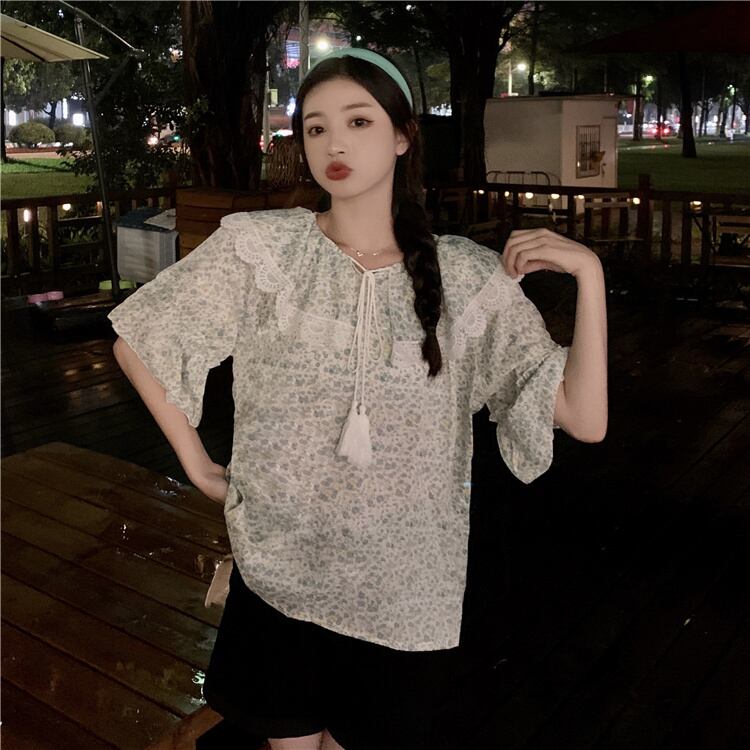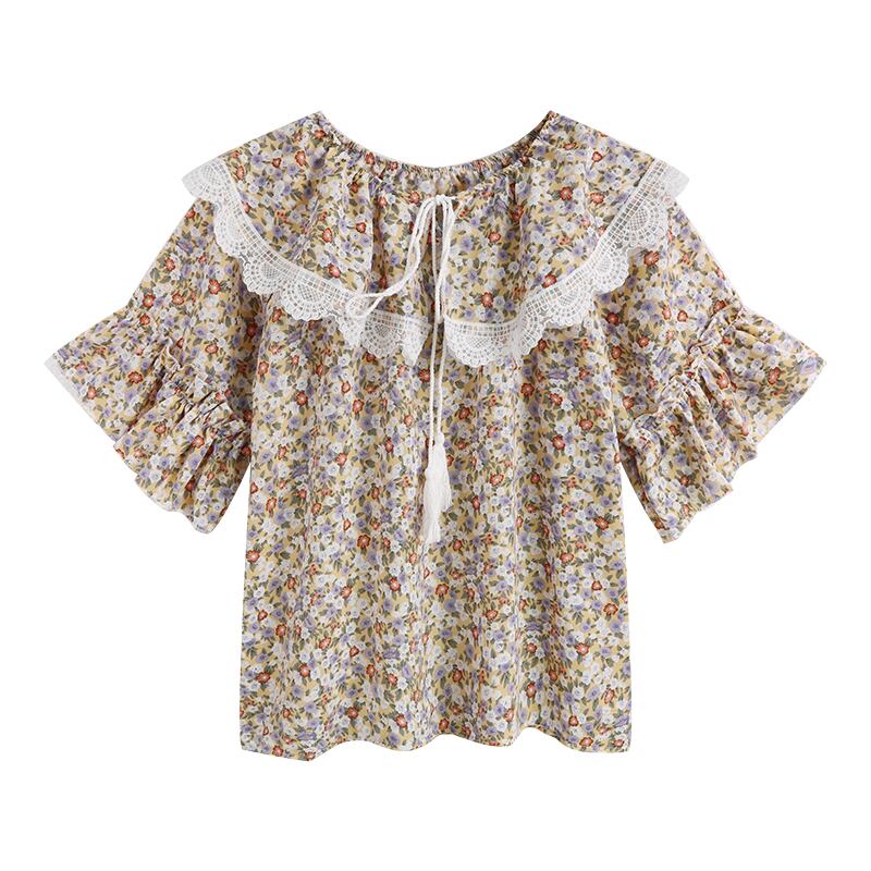 シャツ サマー薄手カラーフローラルブラウス 大人ガーリー スウィート キュート カジュアル 夏物 花柄 1号婦人5628971474
