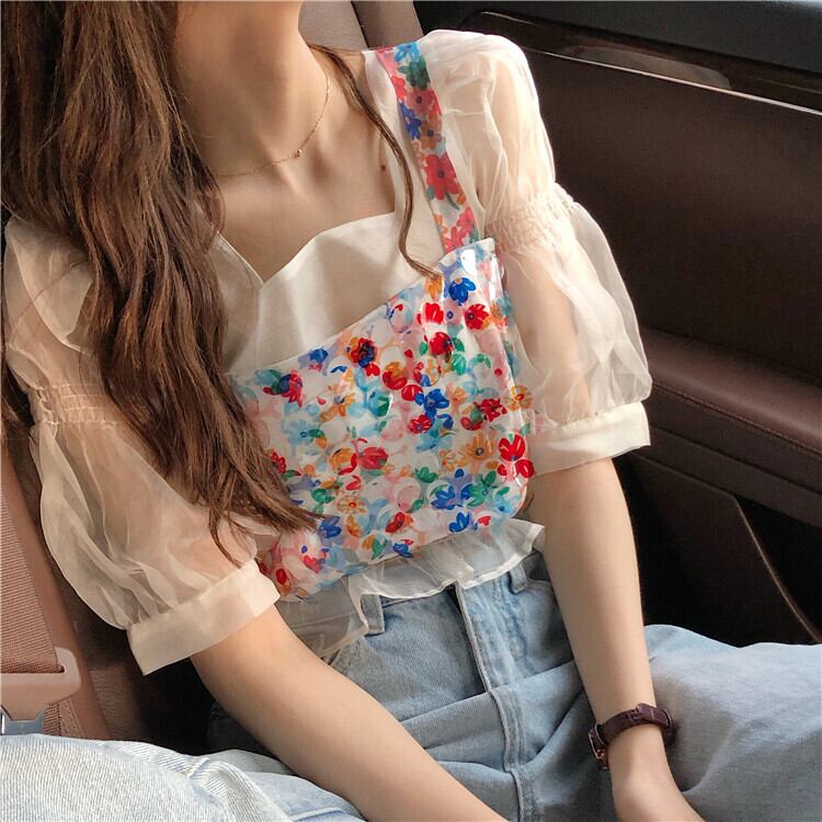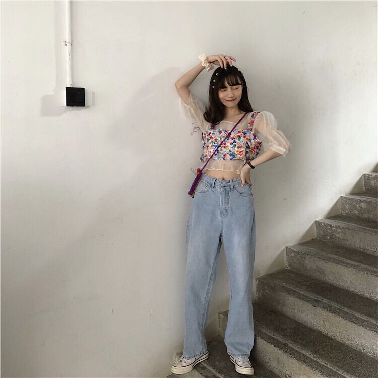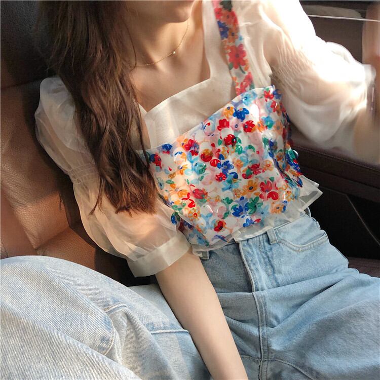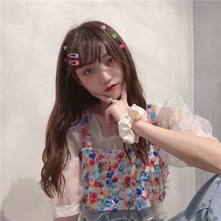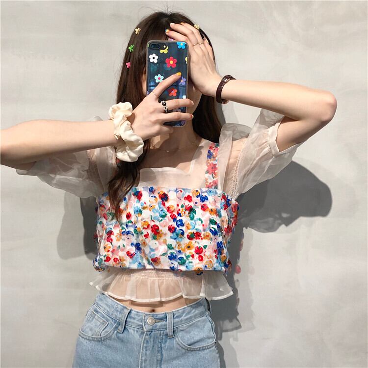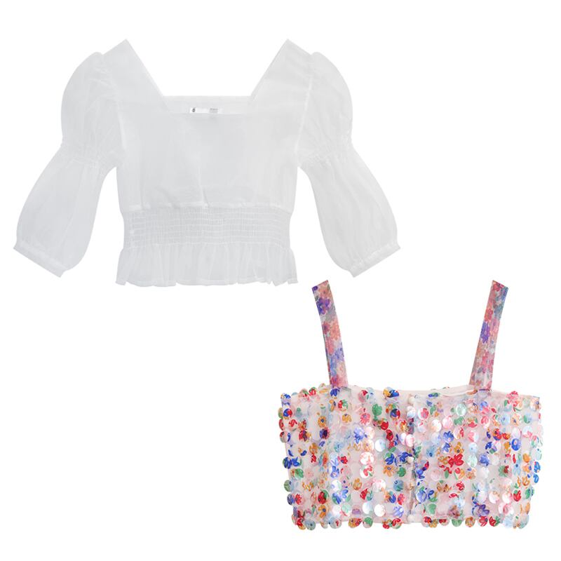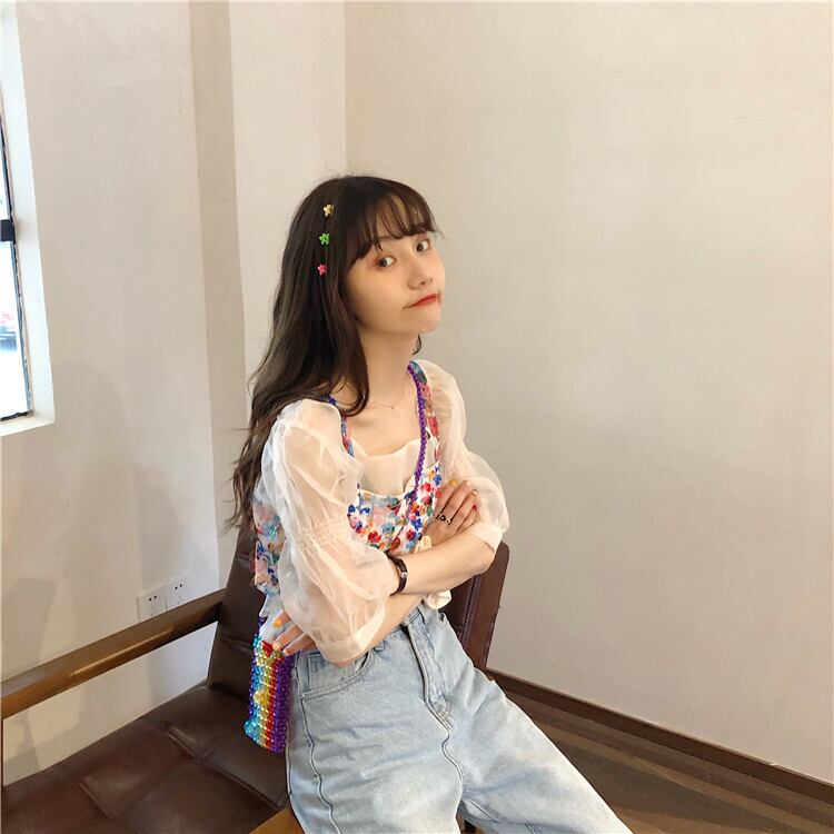 色:カラースパンコールベスト,ガーゼパフスリーブシャツ