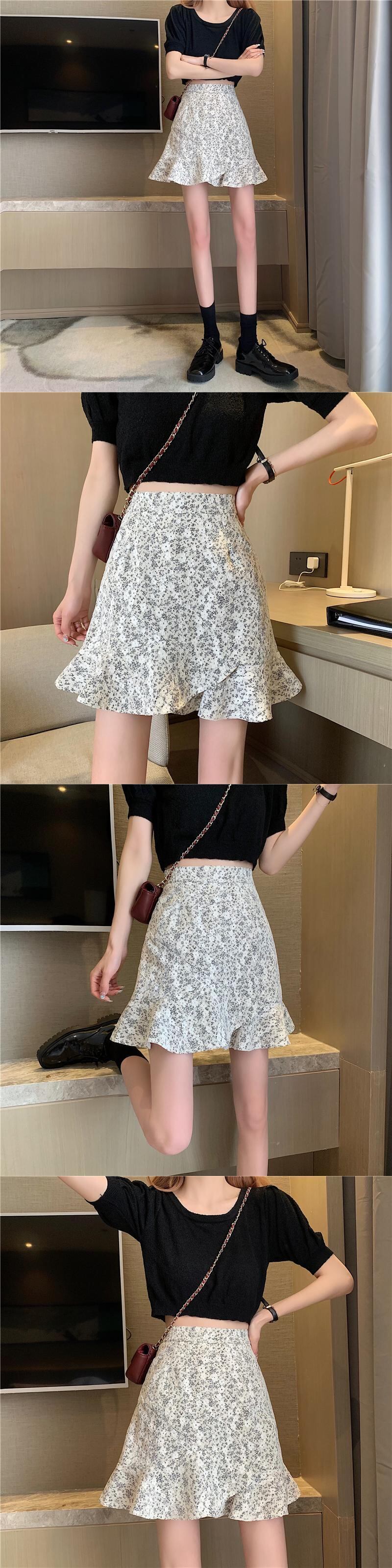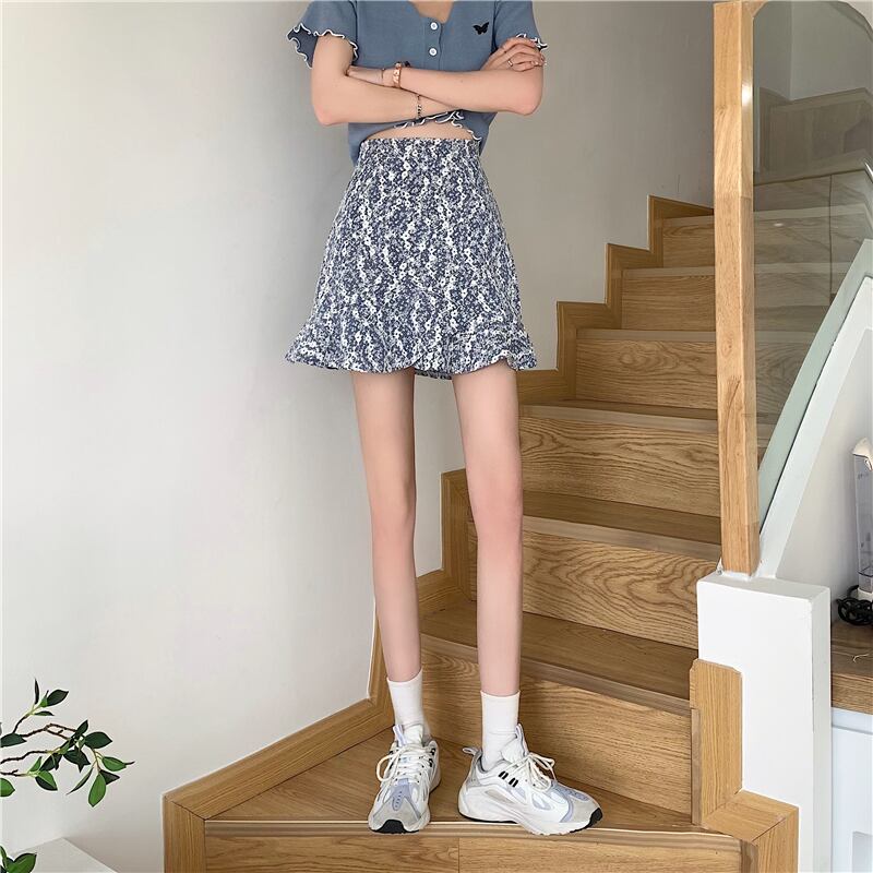 スカート スプリングサマーAラインハイウェストウェストレースフローラルショート 春物 夏物 花柄 1号婦人92524548167