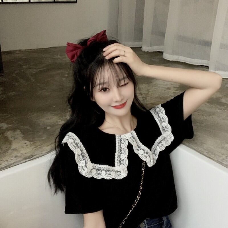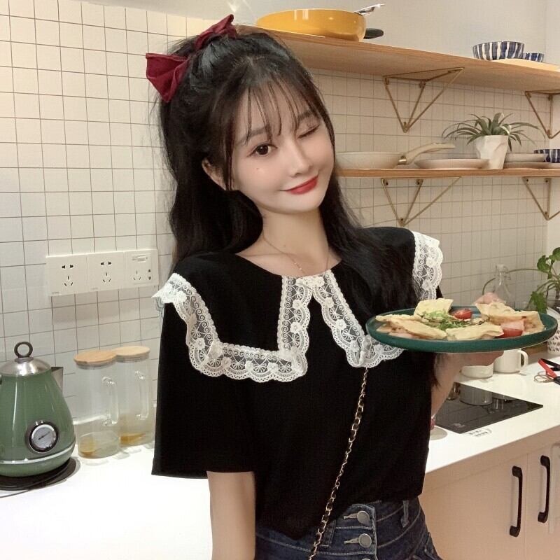 サマーレースカラートップス ブラックTシャツ 夏物 1号婦人11212418295