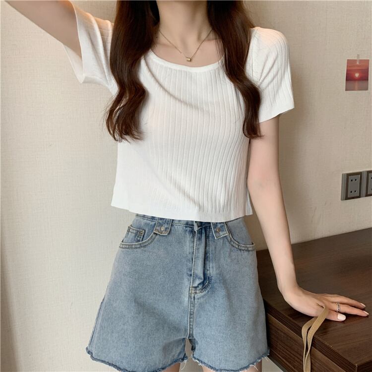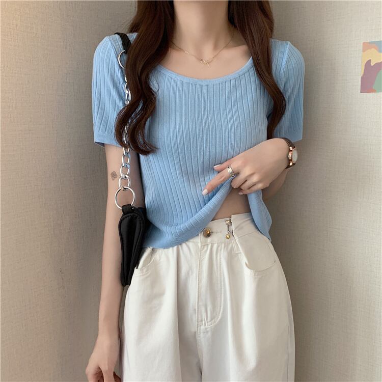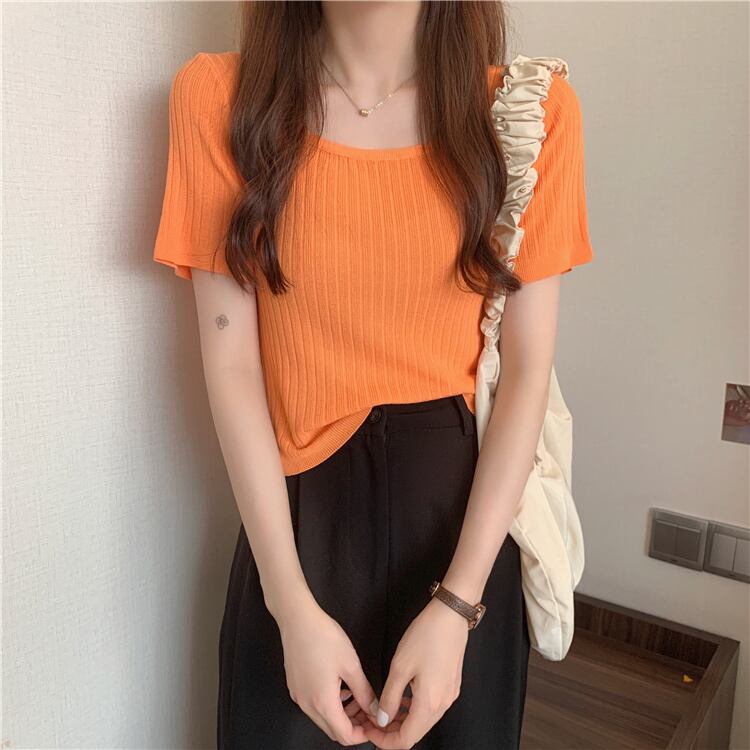 Tシャツ 薄手サマースリムニットトップス 夏物 1号婦人67658950871