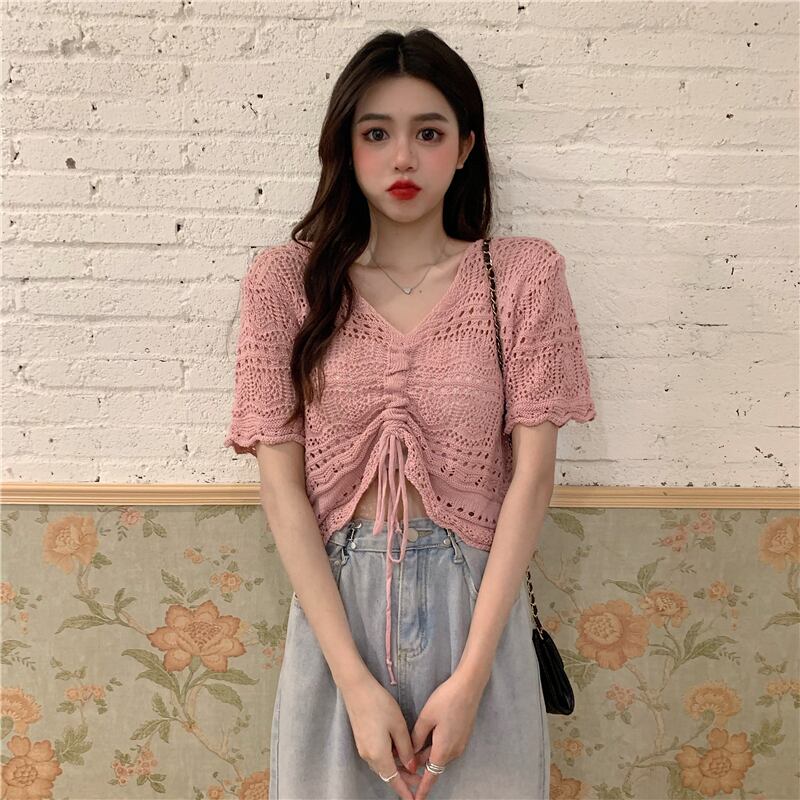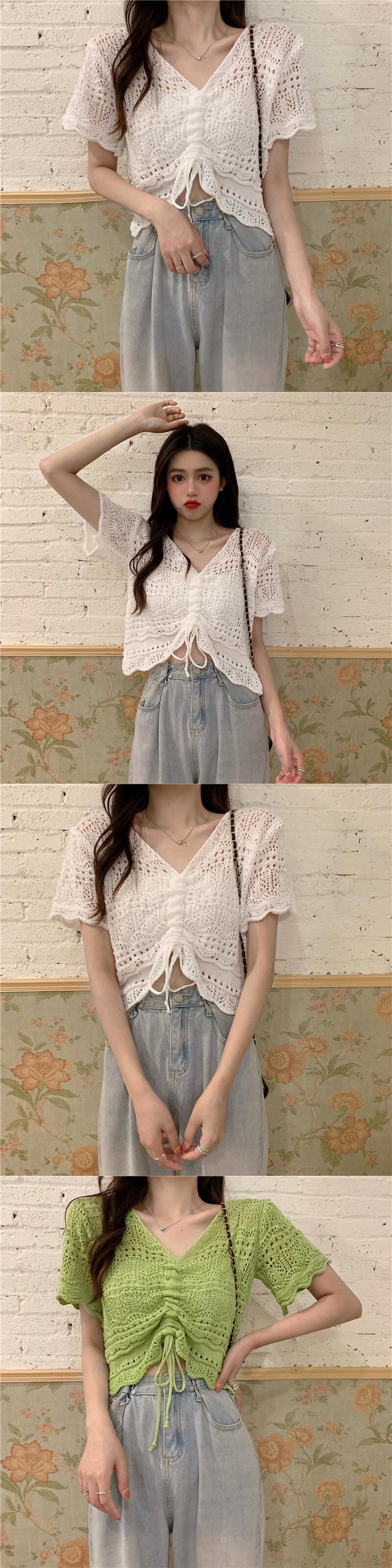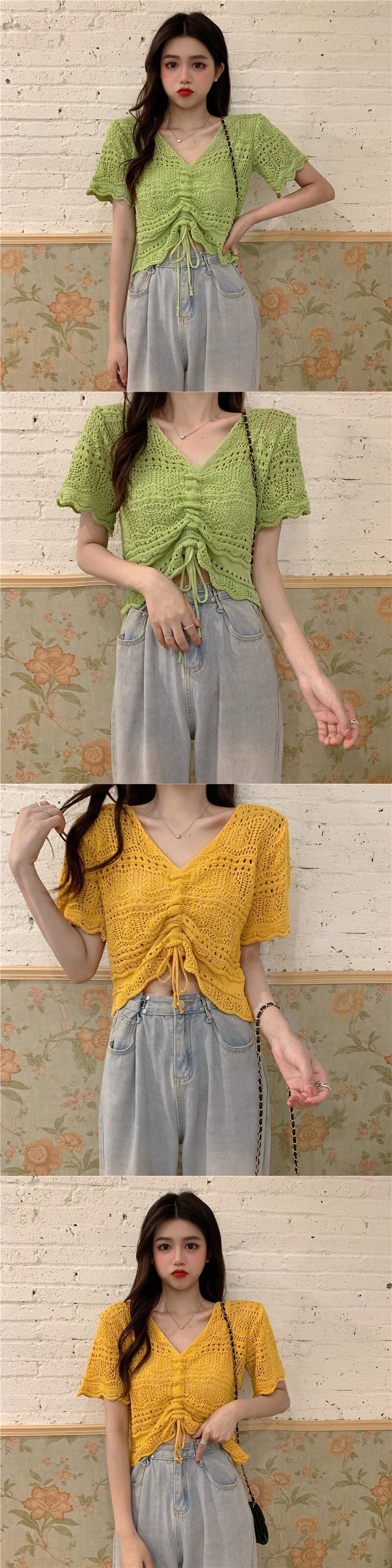 スタイルトップス サマーショートギャザーVネックセーター 薄手シャツ 夏物 1号婦人47476154413