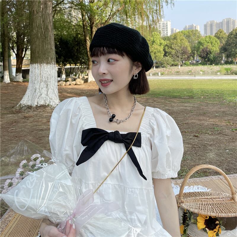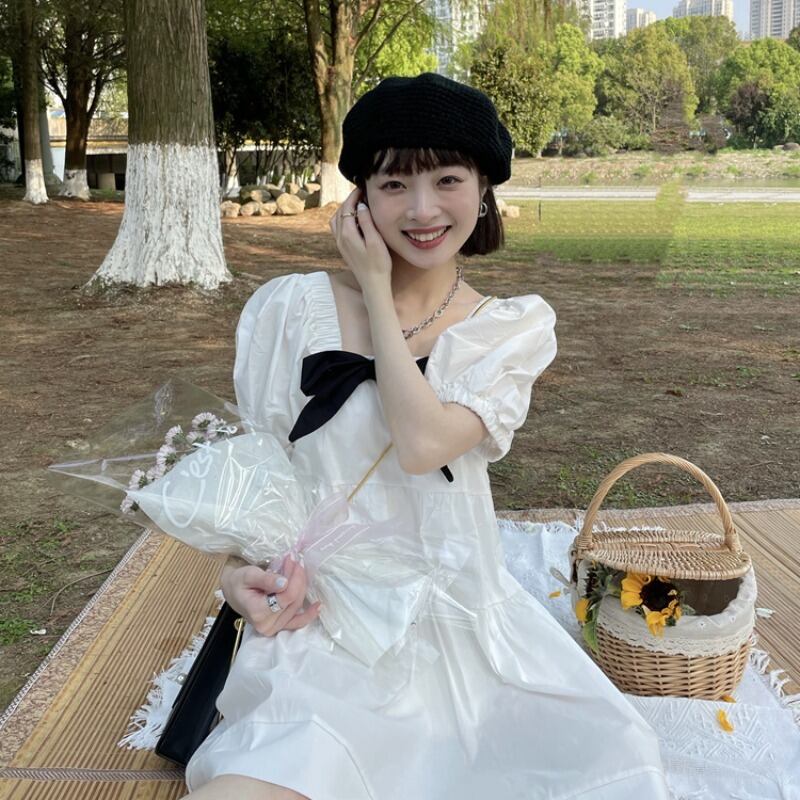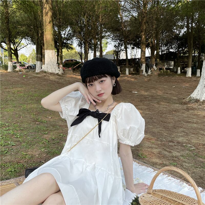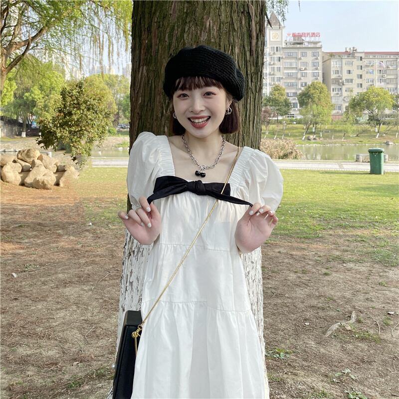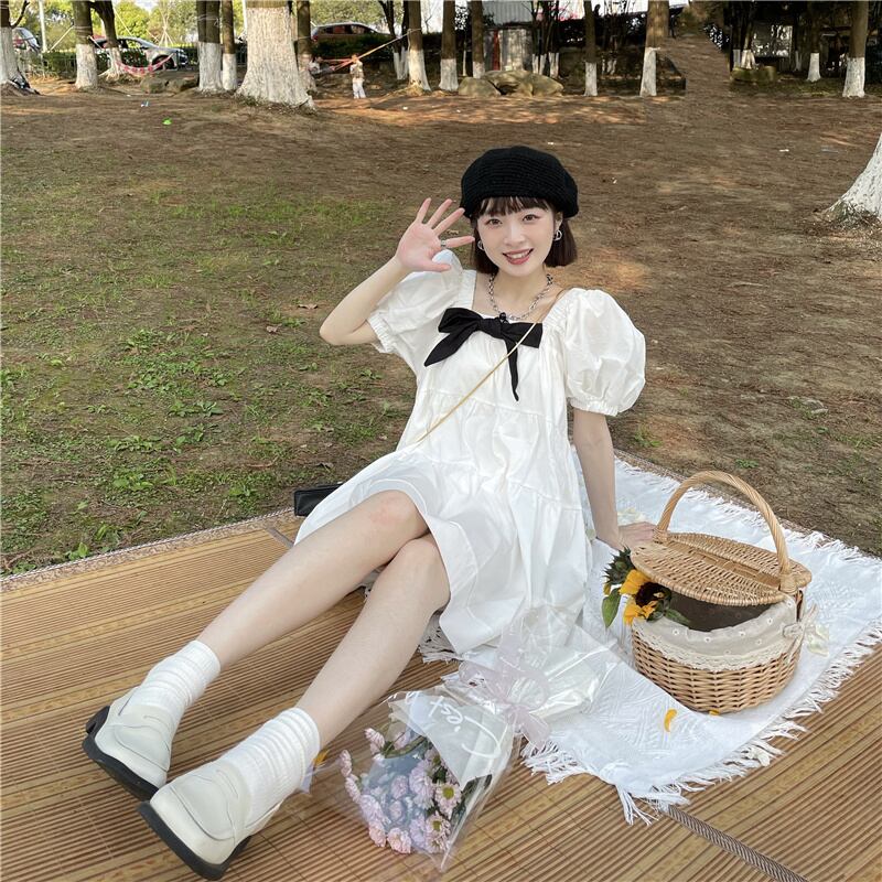 ドレス スプリングサマールーズカラースリーブAラインスカート 大人ガーリー スウィート キュート カジュアル 春物 夏物 スクウェア 1号婦人81694793128