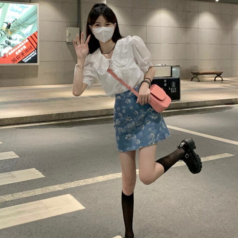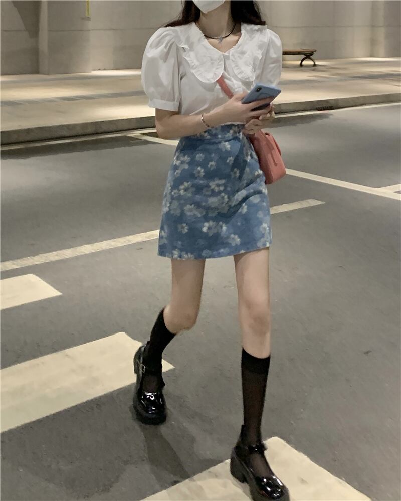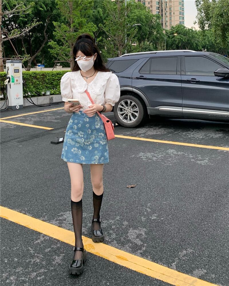 サマードレス スカート カラーシャツ ハイウェストウェスト 夏物 1号婦人38234874120