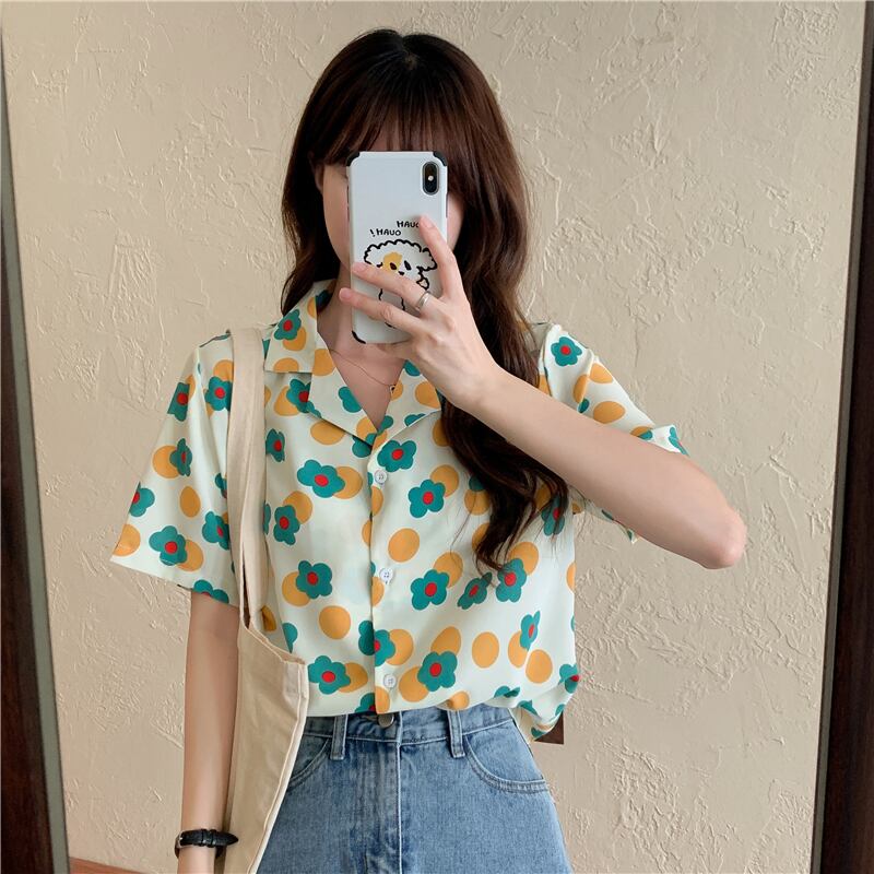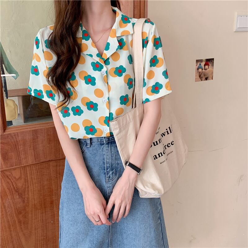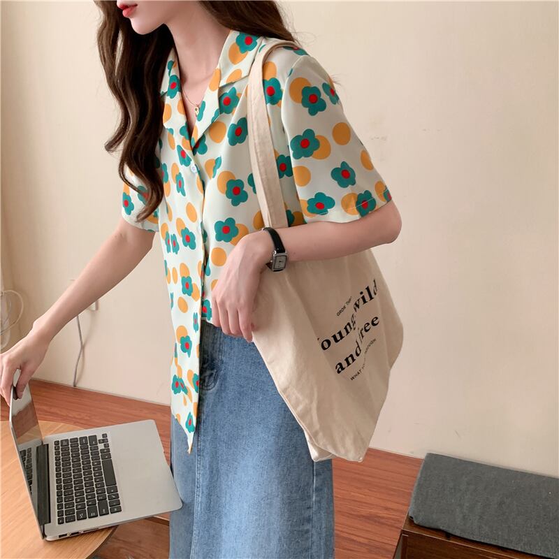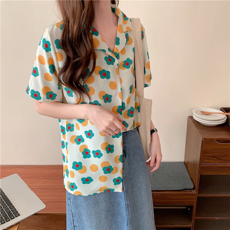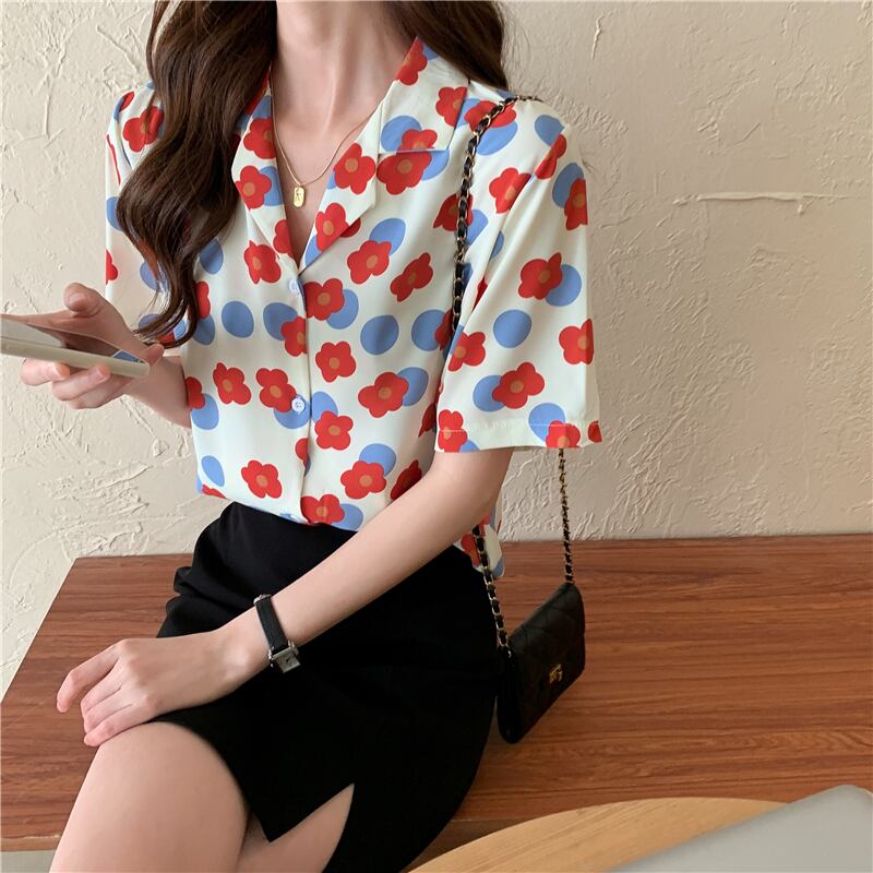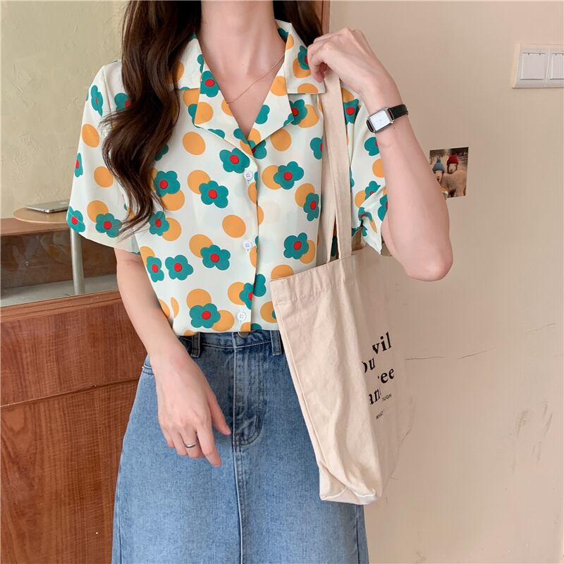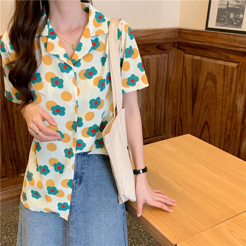 スタンダードスタイルプリントシャツ サマートップス 薄手 レトロ 夏物 1号婦人19153192514
