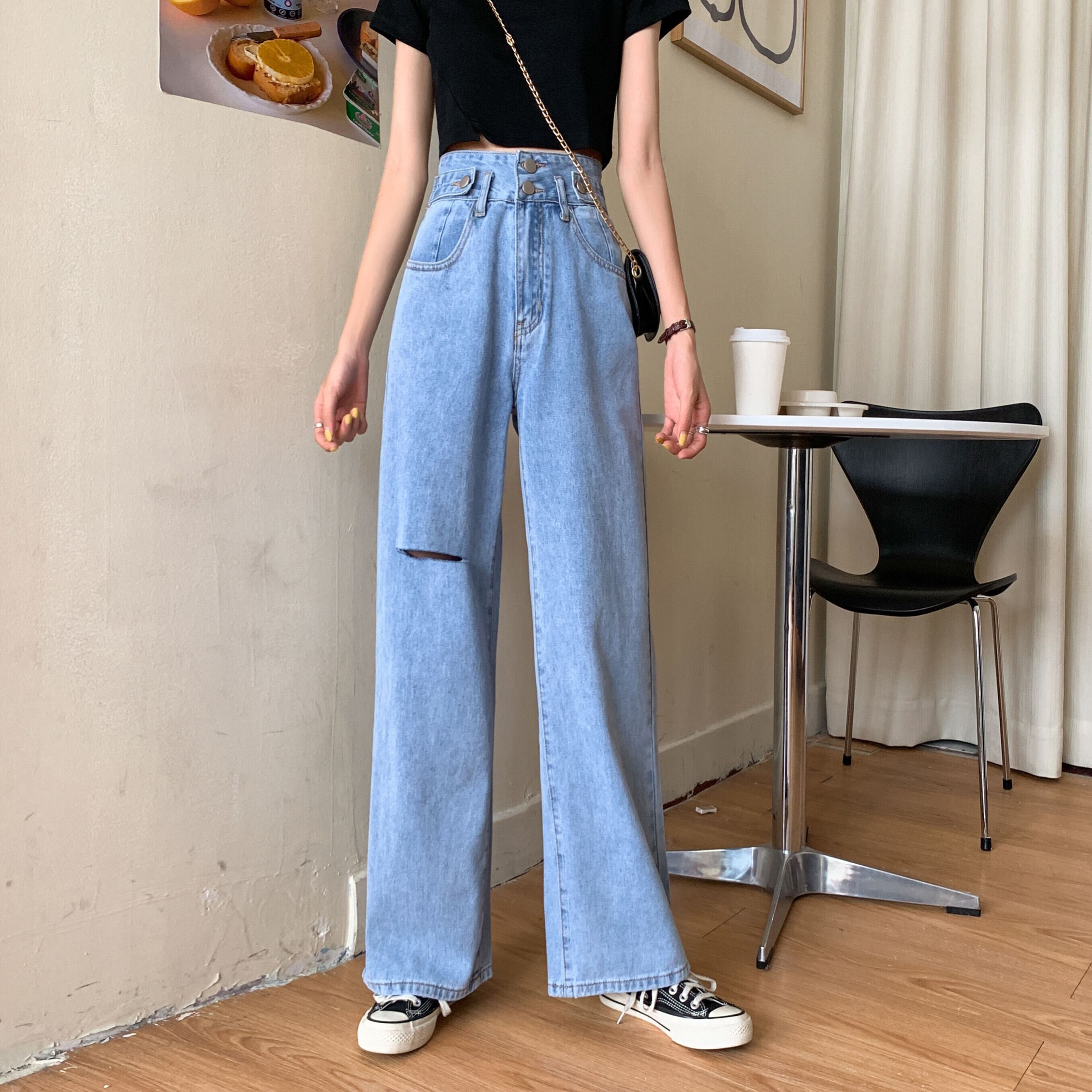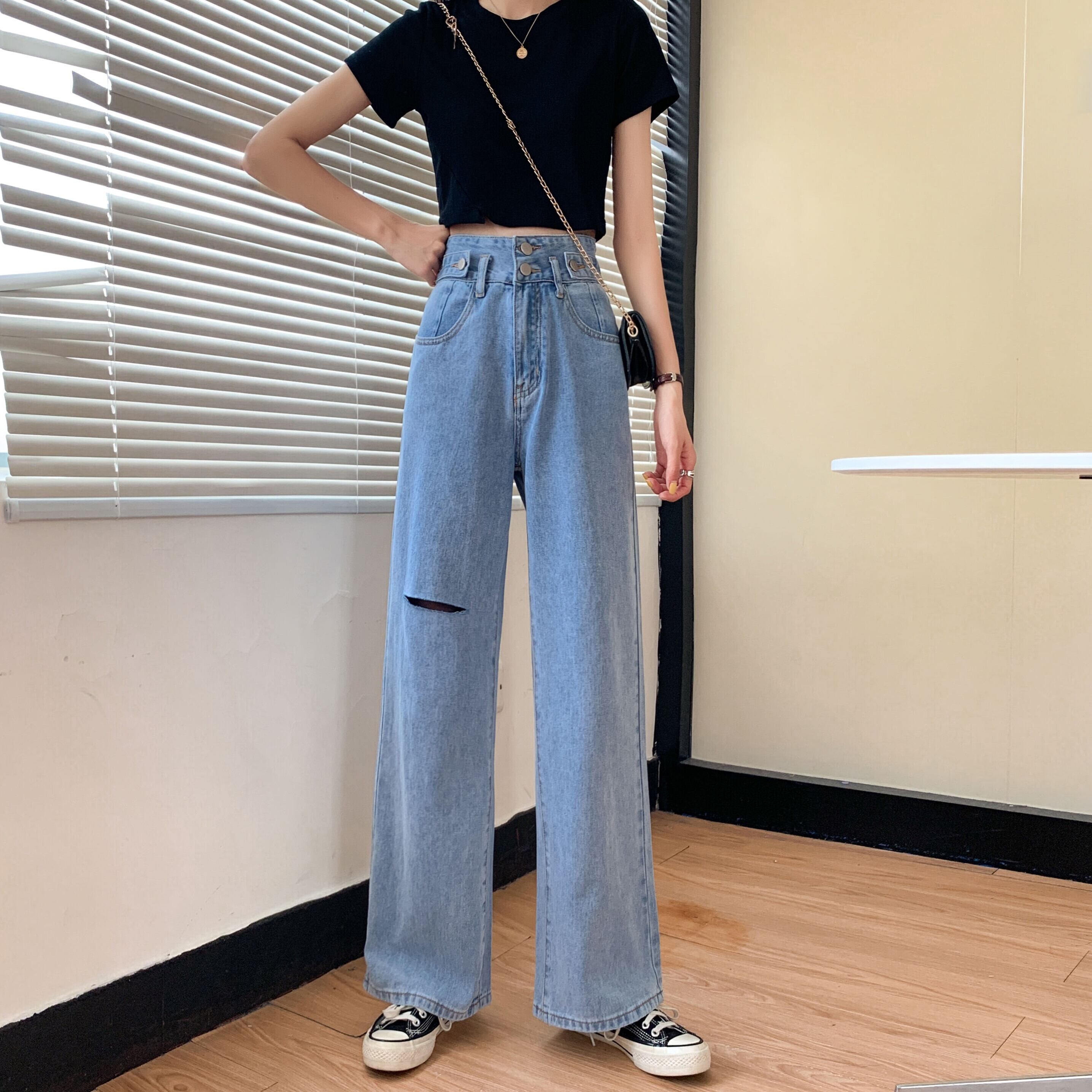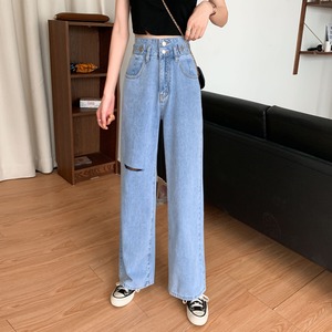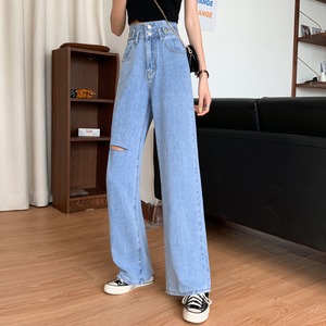 サマージーンズ 薄手ハイウェストウェストルーズワイドレッグパンツ ロング 夏物 ワイドパンツ 1号婦人54079916717