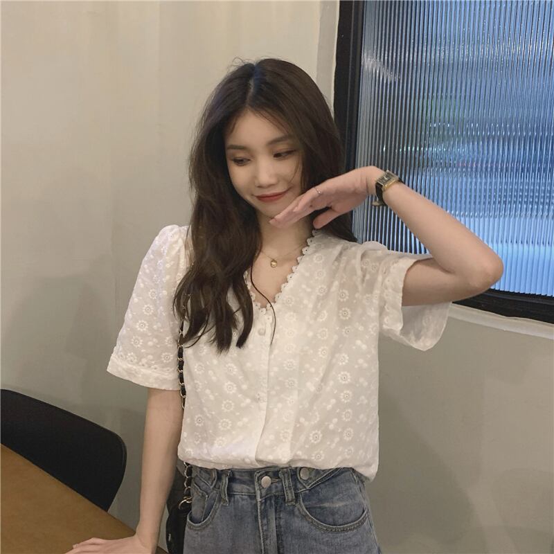 シャツ サマー薄手ホワイトフローラルトップス 夏物 花柄 1号婦人72437676742