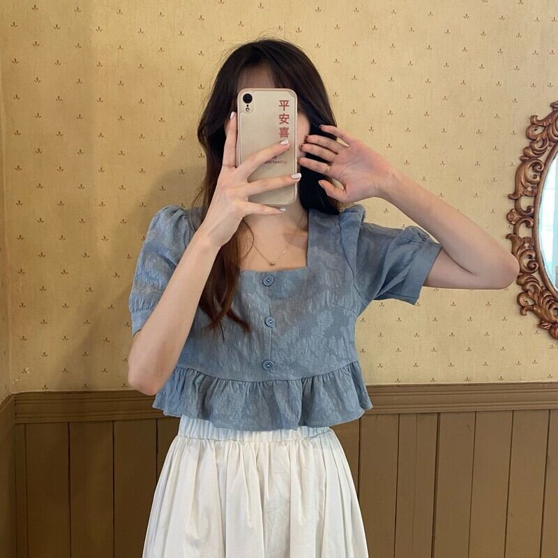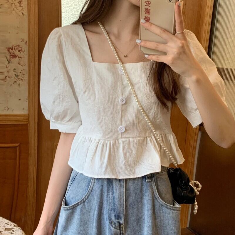 シャツ サマー薄手スタンダードカラールーズショートスリムトップス レトロ 夏物 スクウェア 1号婦人57505229517