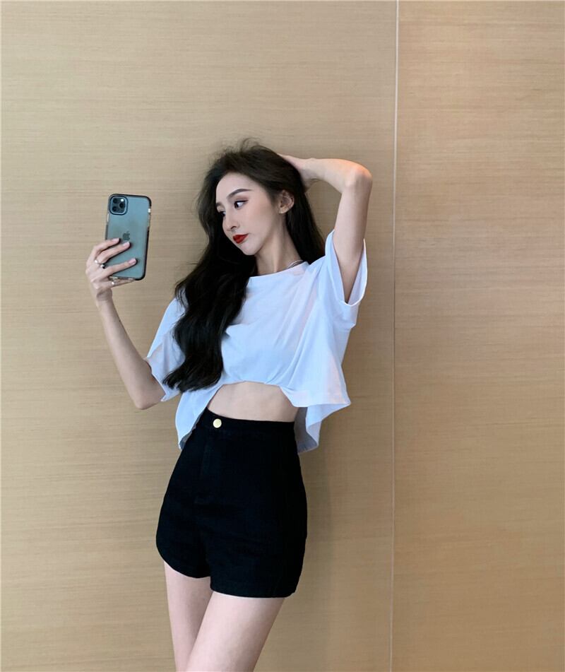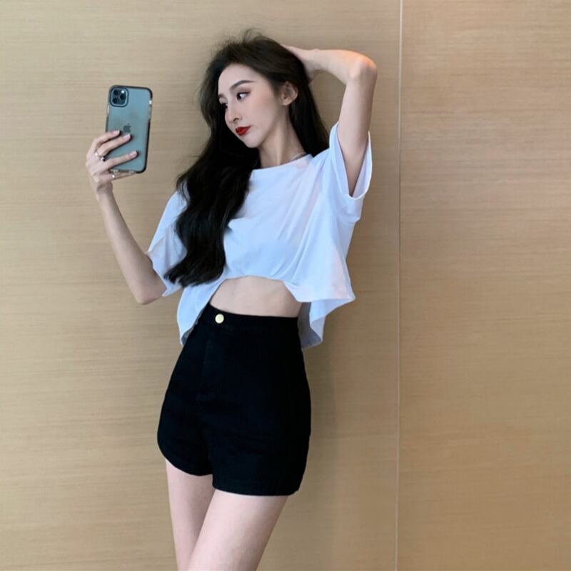ショーツ サマー薄手ハイウェストウェストパンツ ブラック 夏物 ブルマー 1号婦人87785279445