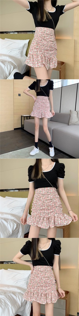 スプリングスカート Aラインハイウェストウェストソリッド カラー薄手ショート 春物 ソリッドカラー 1号婦人89980506582