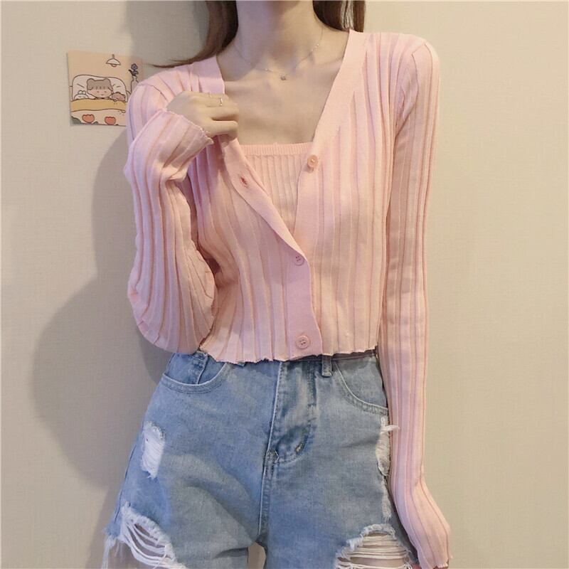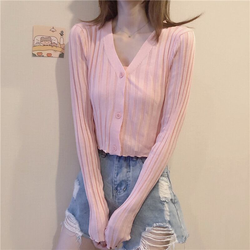 スプリングオータムカーディガンジャケット ニットセーター 薄手Vネックシャツ 春物 秋物 1号婦人23050734491