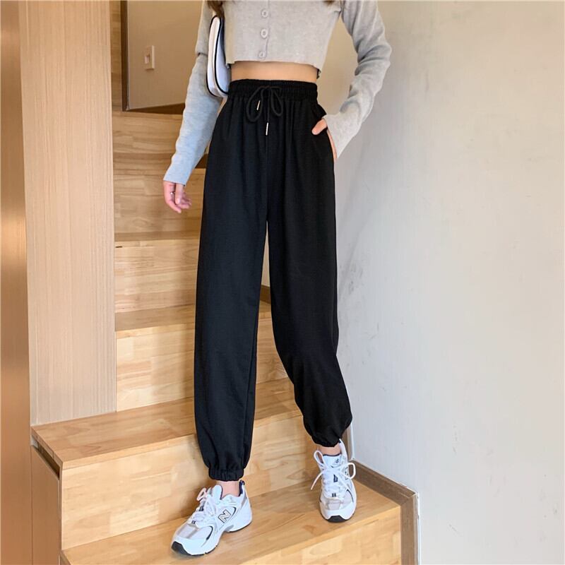 パンツ サマー薄手ルーズハイウェストウェストスリムブラック 夏物 1号婦人43043275796