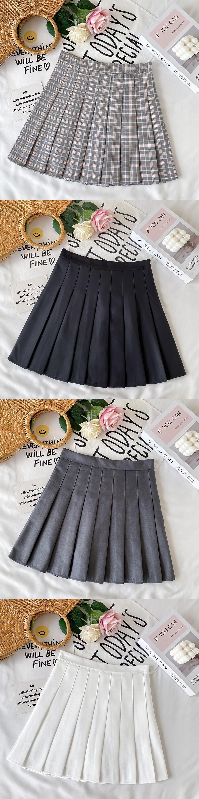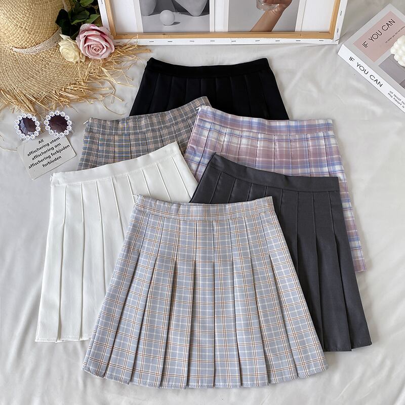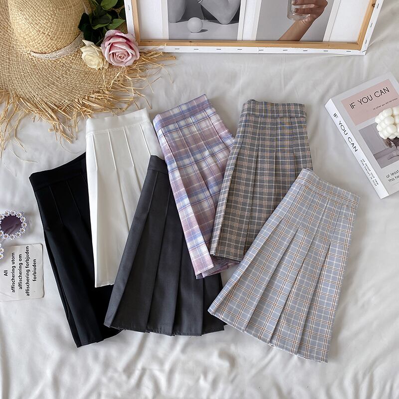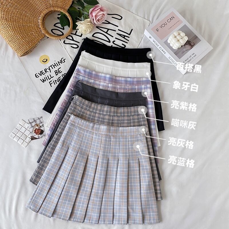 スプリングオータムスカート Aラインハイウェストウェストスタンダード格子柄ショートプリーツ レトロ 春物 秋物 1号婦人55289140108