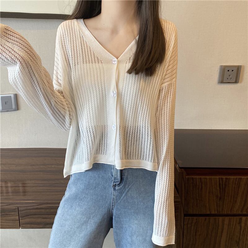 ホワイトサマーブラウス ルーズニットカーディガンVネックジャケット ロング 夏物 1号婦人48531999879