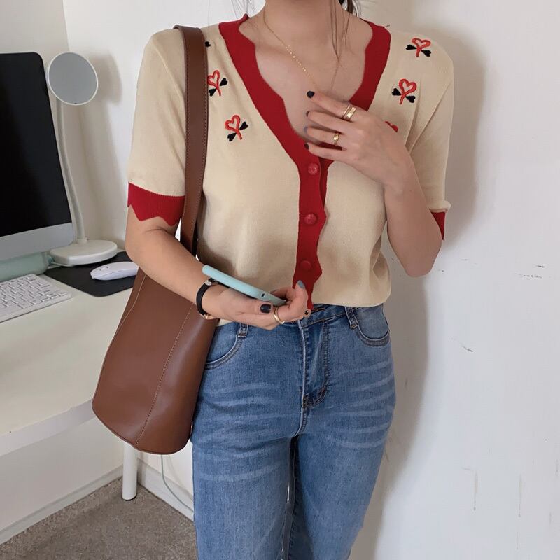 ショートVネックセーター サマー薄手ルーズカーディガントップス 夏物 1号婦人9899623857
