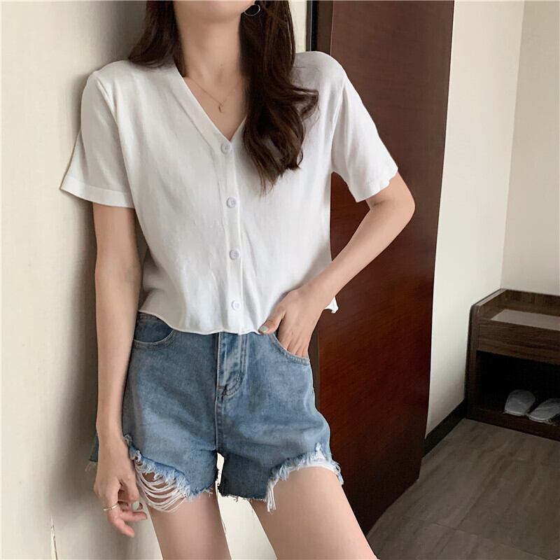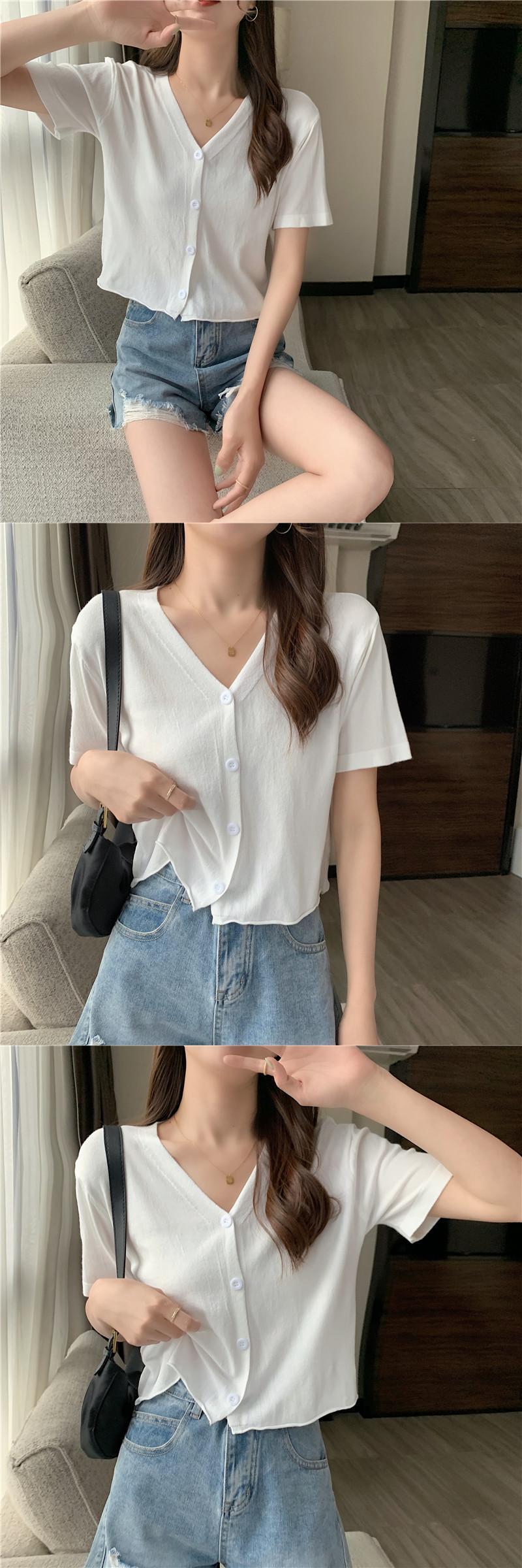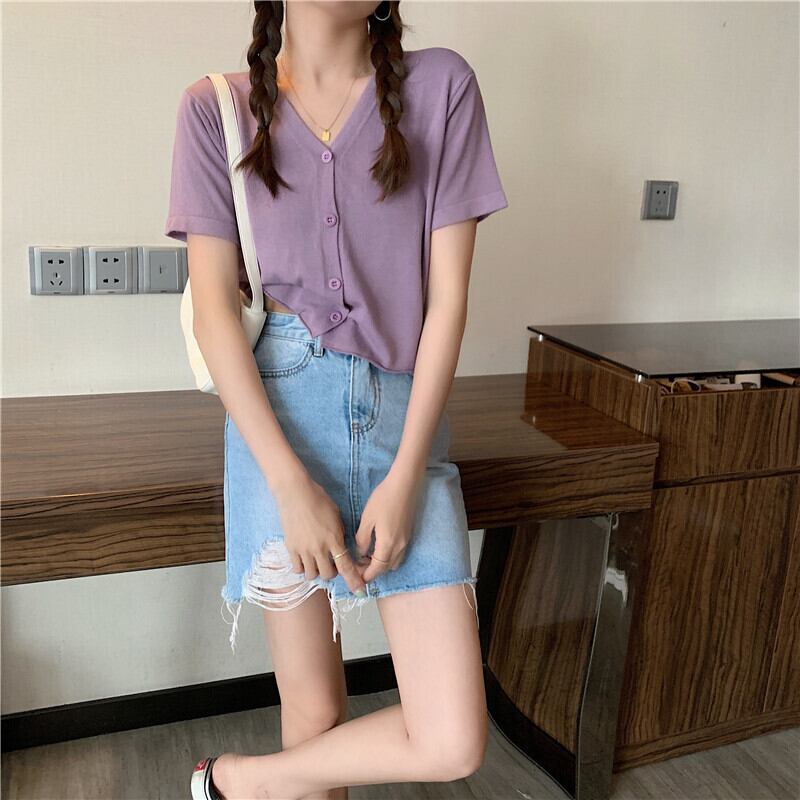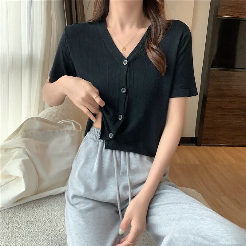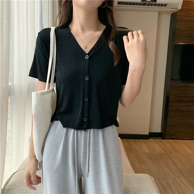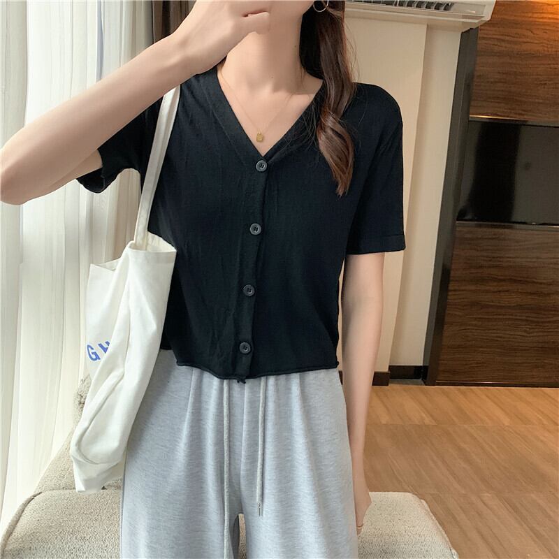ニットセーター 薄手サマーボタンカーディガンショートVネックトップス 夏物 1号婦人59632524007