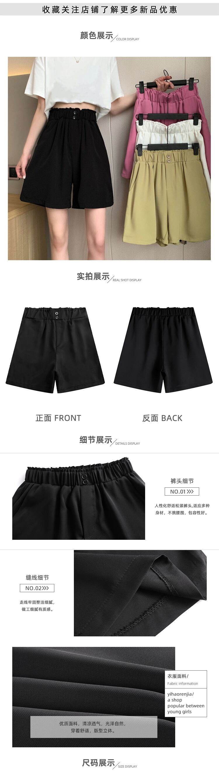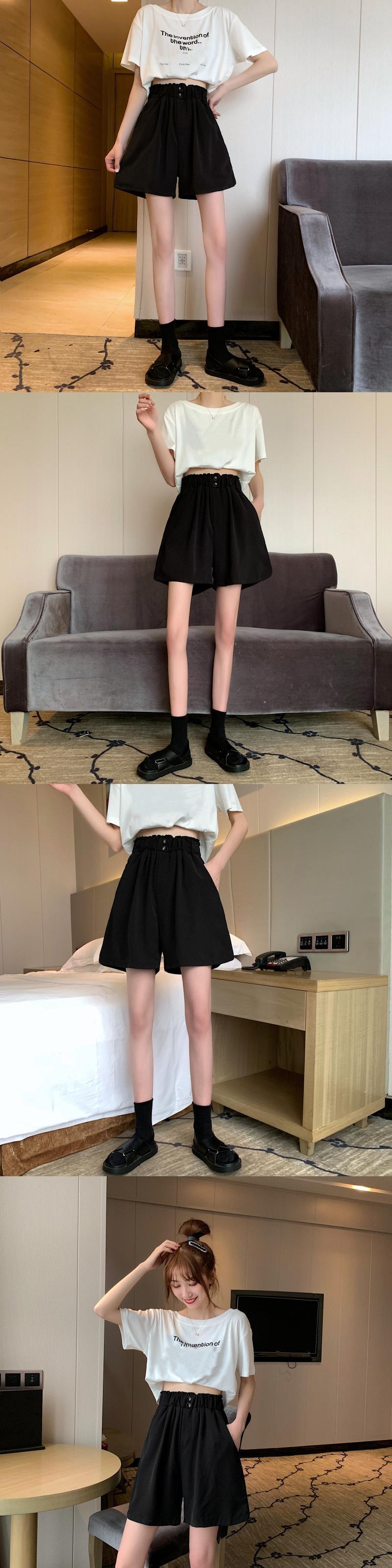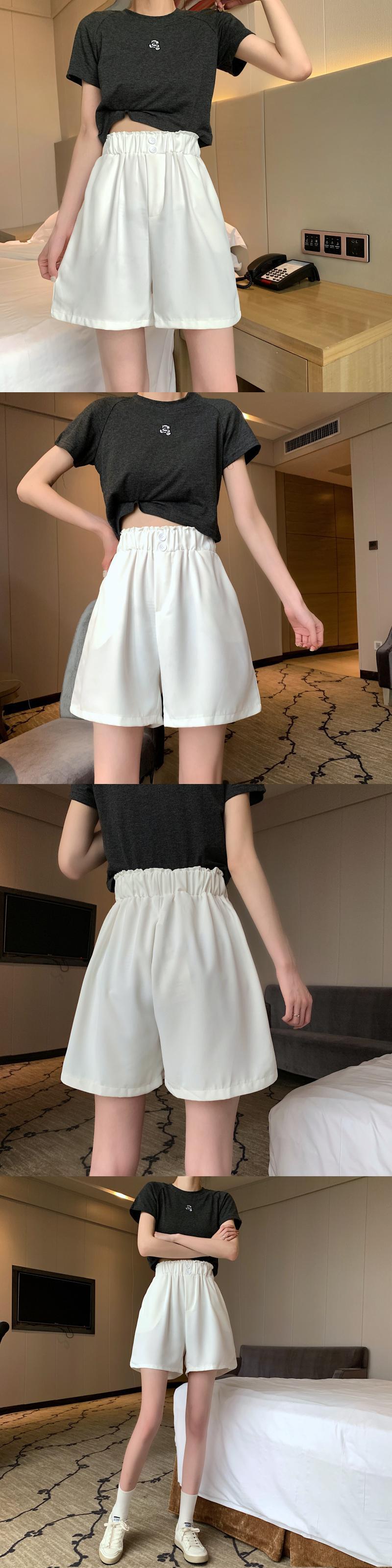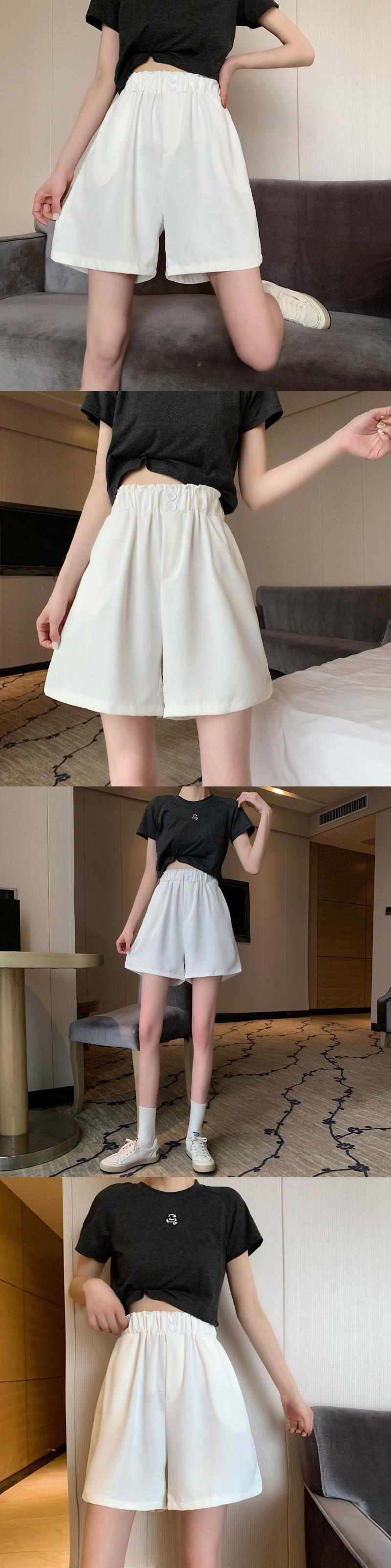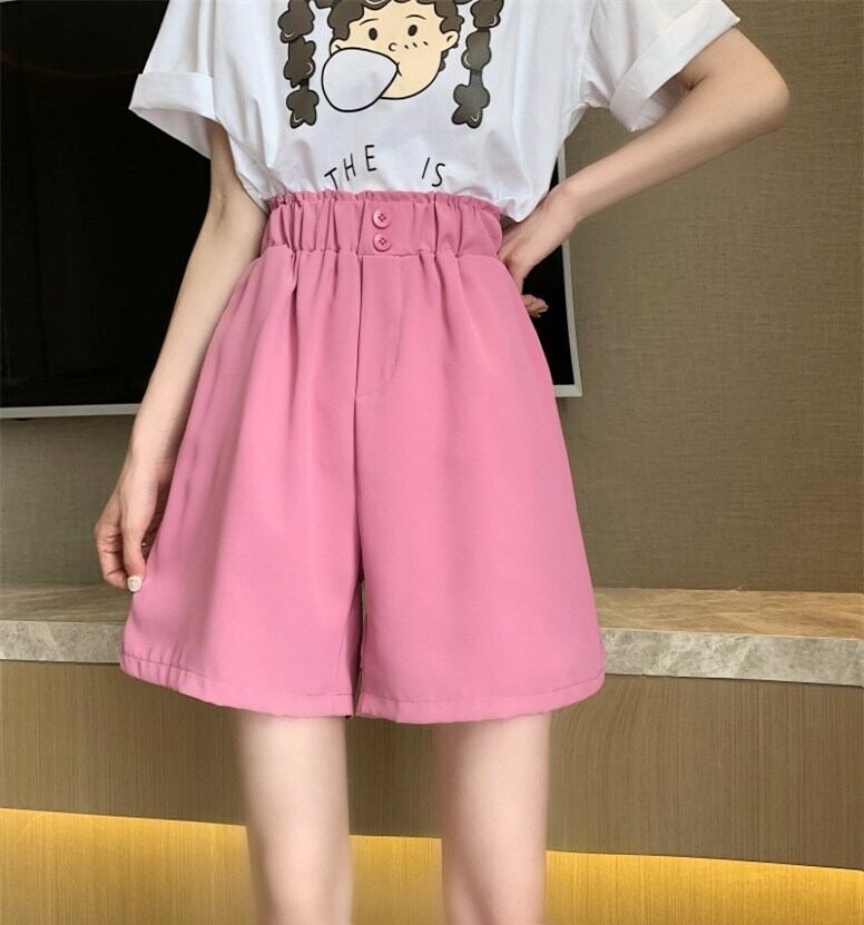 スプリングサマーカジュアルパンツ レディースストレッチウェストルーズショーツ 薄手ハイウェストワイドレッグ エラスティック 伸縮 春物 夏物 ブルマー ワイドパンツ 1号婦人32932447917