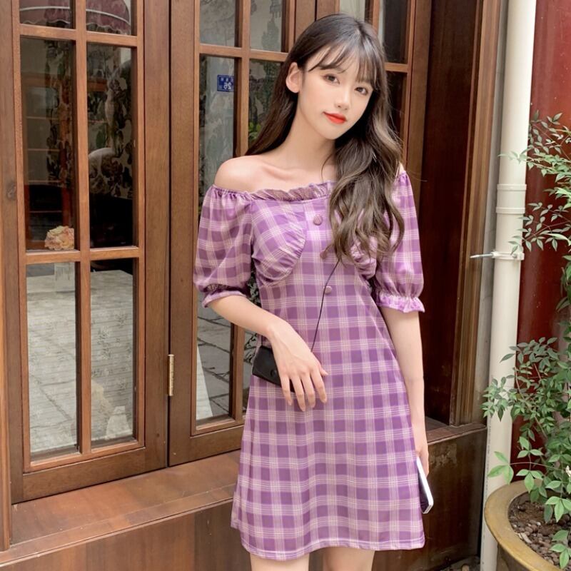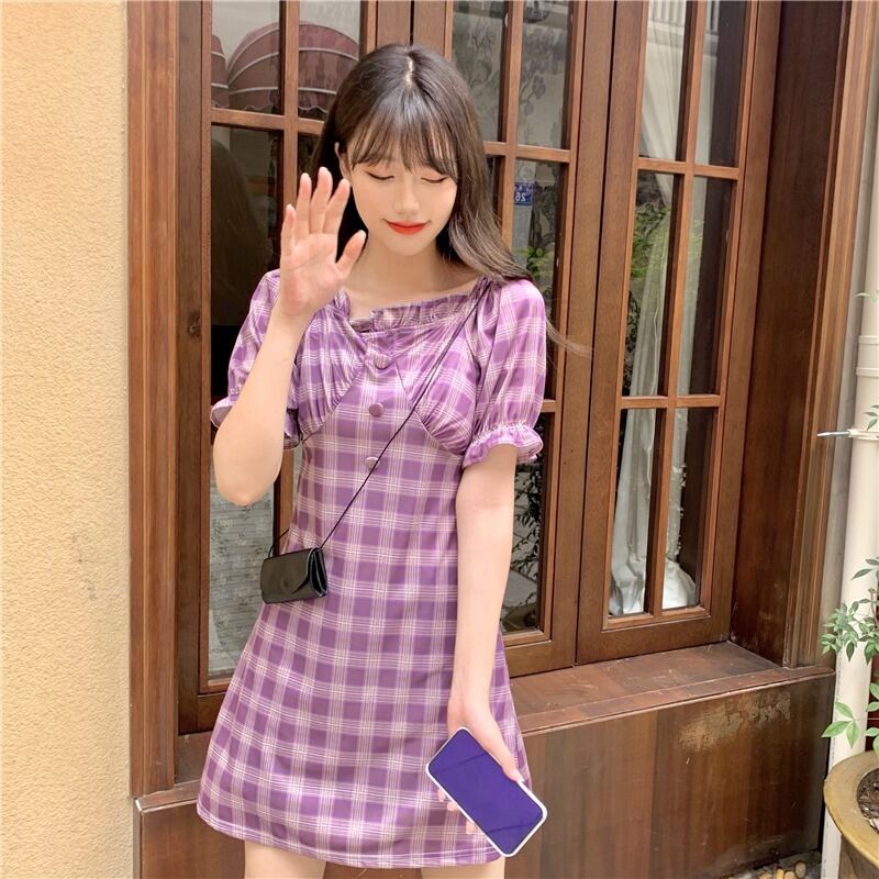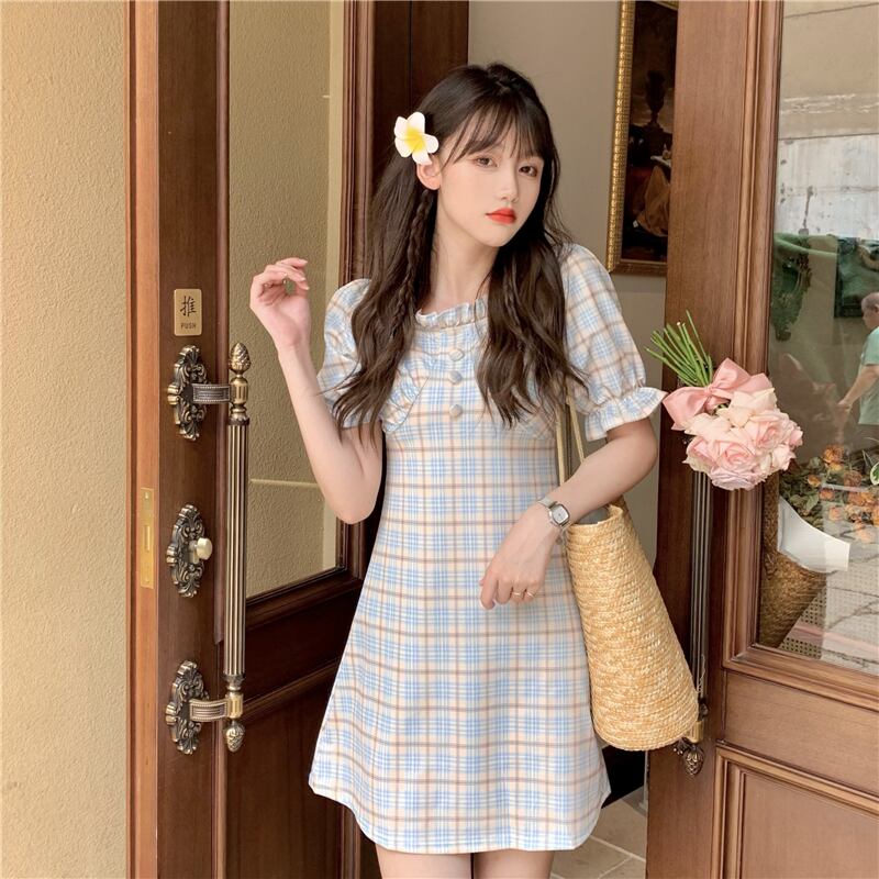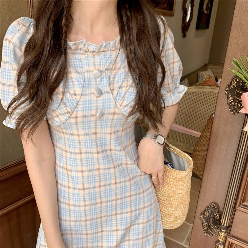 ドレス レディースサマー薄手カラーウェスト格子柄スカート 夏物 スクウェア 1号婦人23633182884