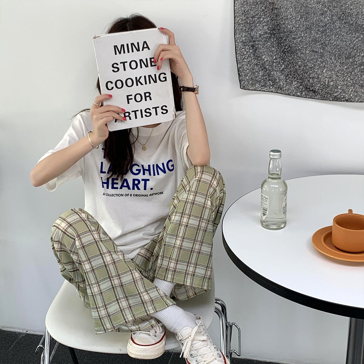 パンツ サマー薄手ルーズ格子柄カジュアルハイウェストウェストワイドレッグ 夏物 ワイドパンツ 1号婦人7353468493
