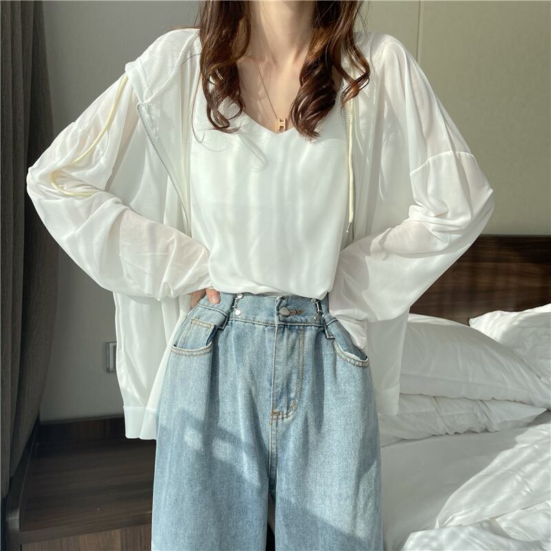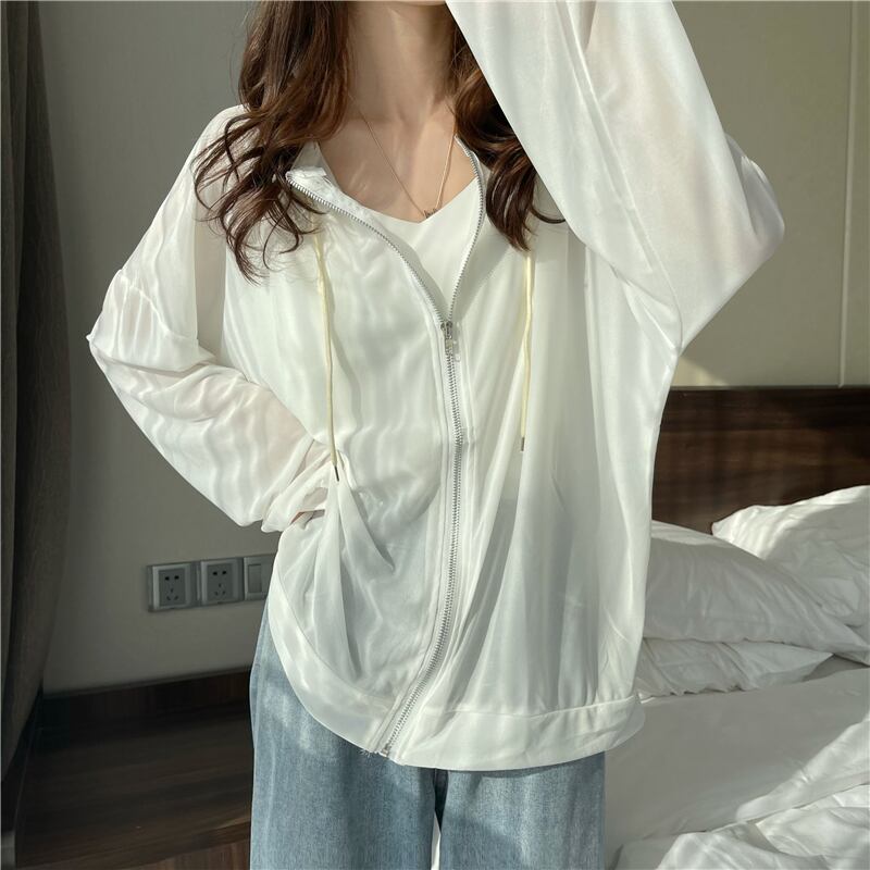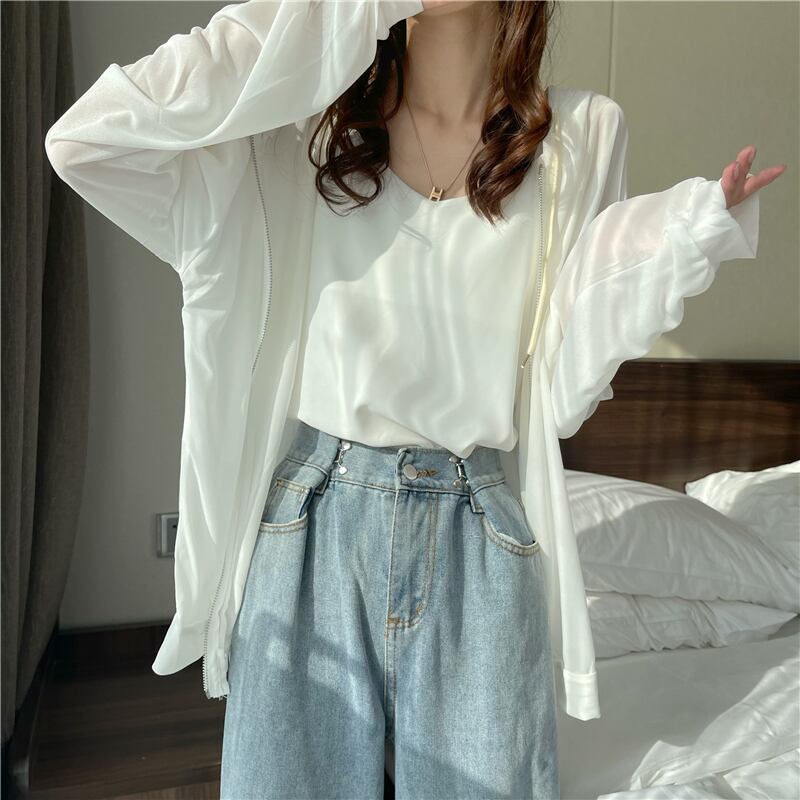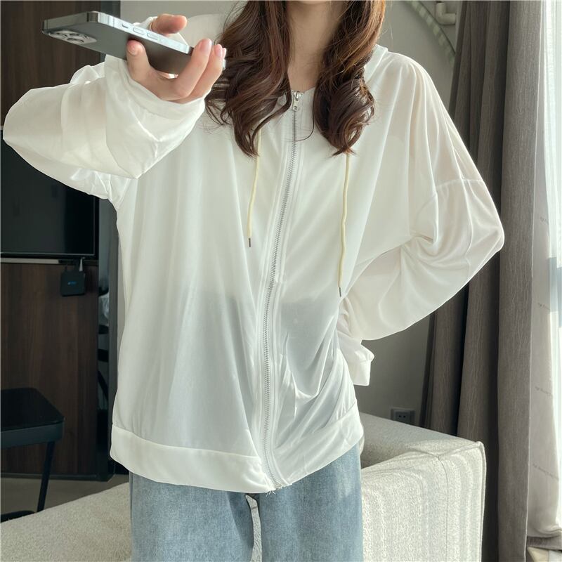 フードジャケット 薄手レディースサマールーズホワイトトップス ロング 夏物 1号婦人83675781253
