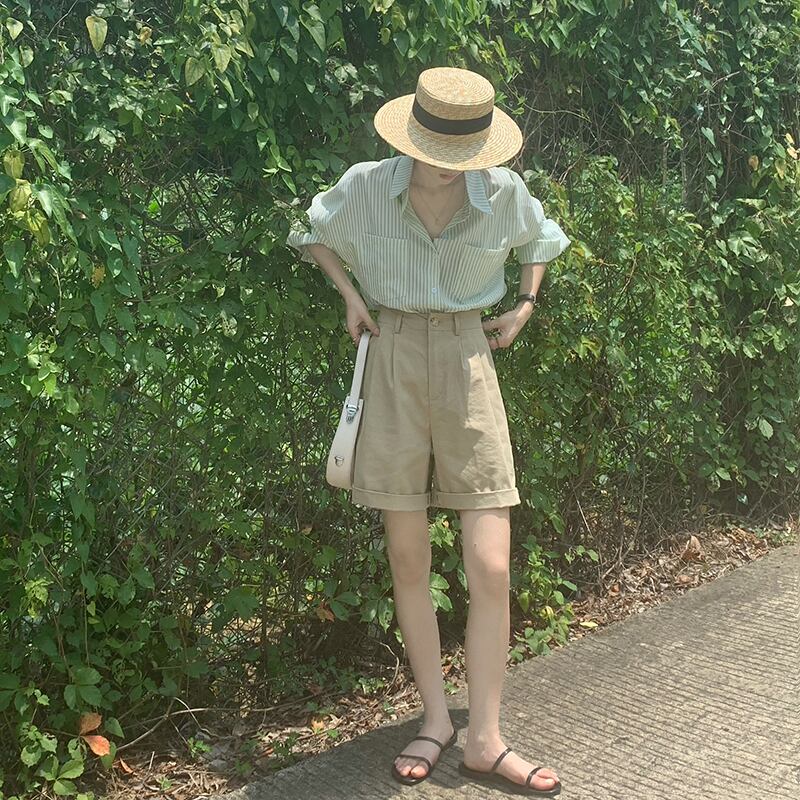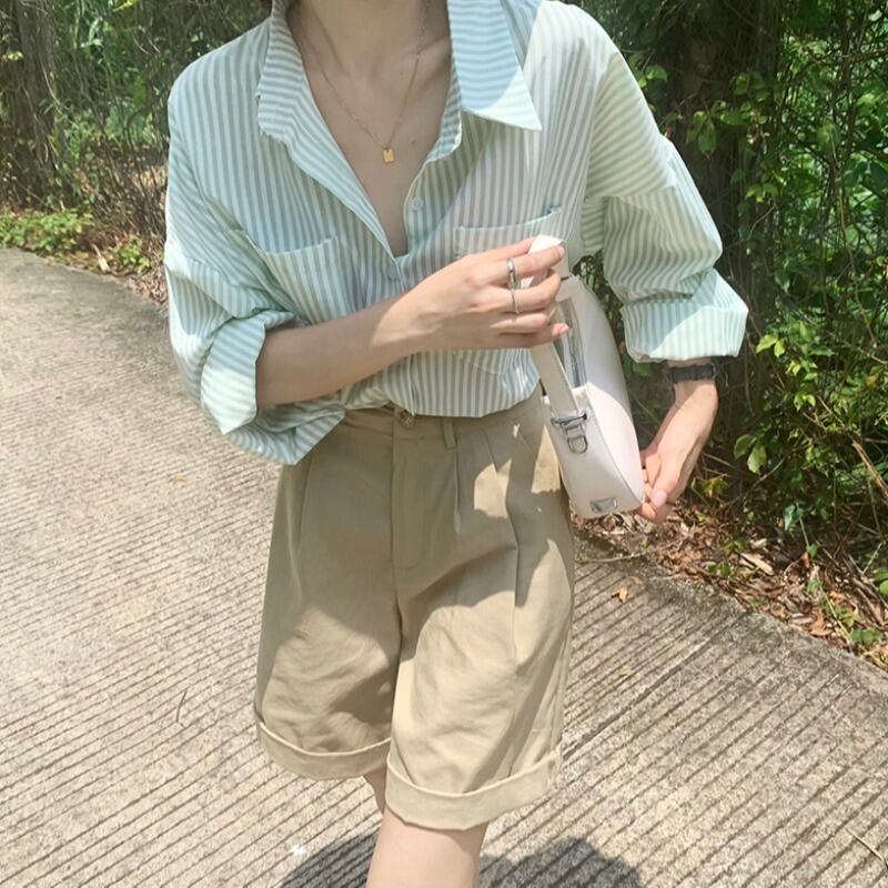 シャツ トップス サマー薄手ルーズストライプ 大人ガーリー スウィート キュート カジュアル 夏物 1号婦人4235589319