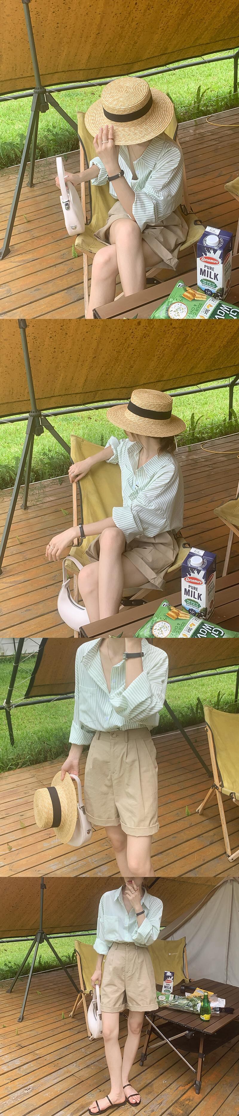 色:ストライプの2ポケットシャツ