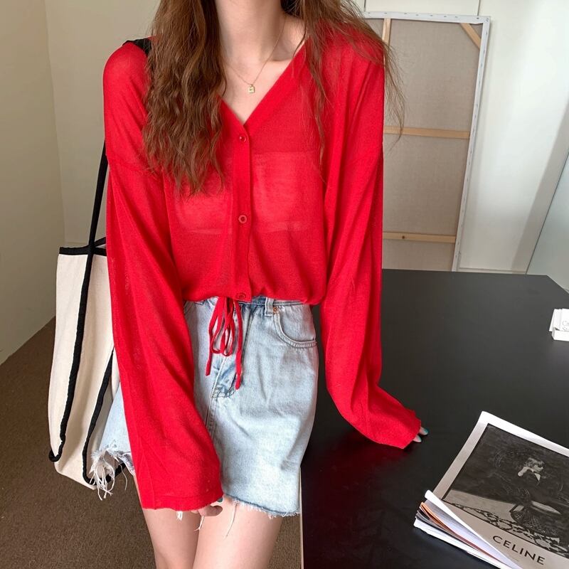 ブラウス トップス サマー薄手ルーズショートニットセーター ジャケット 夏物 1号婦人42249541993