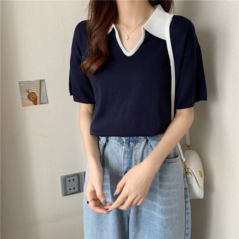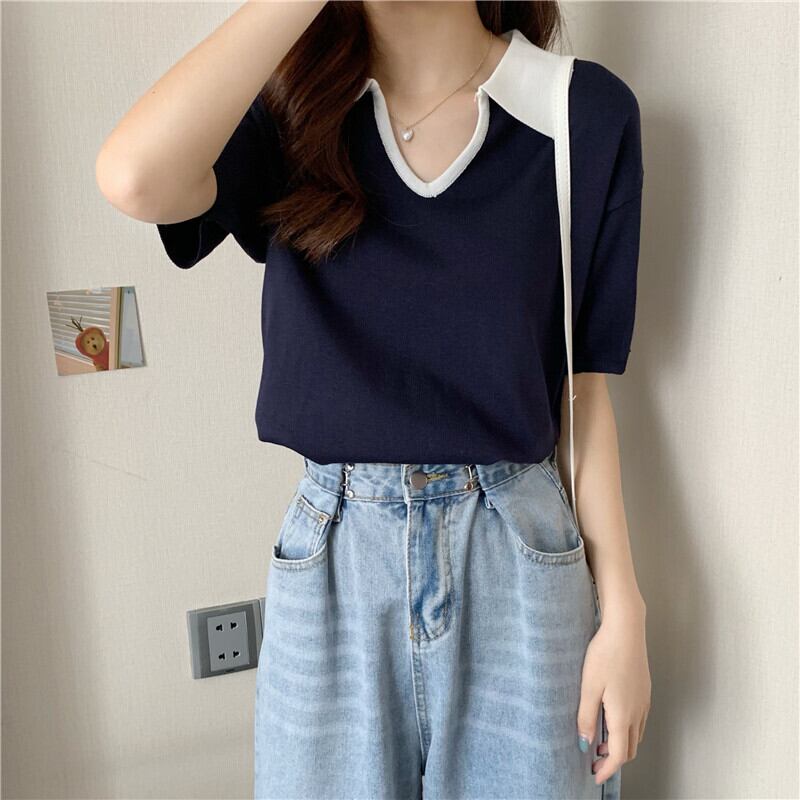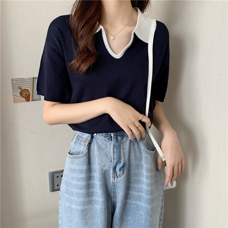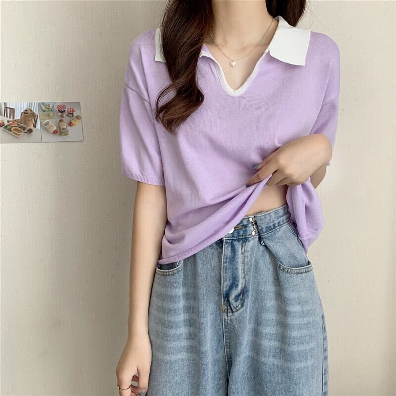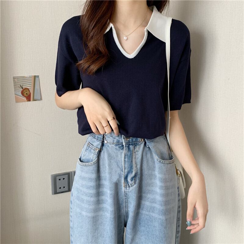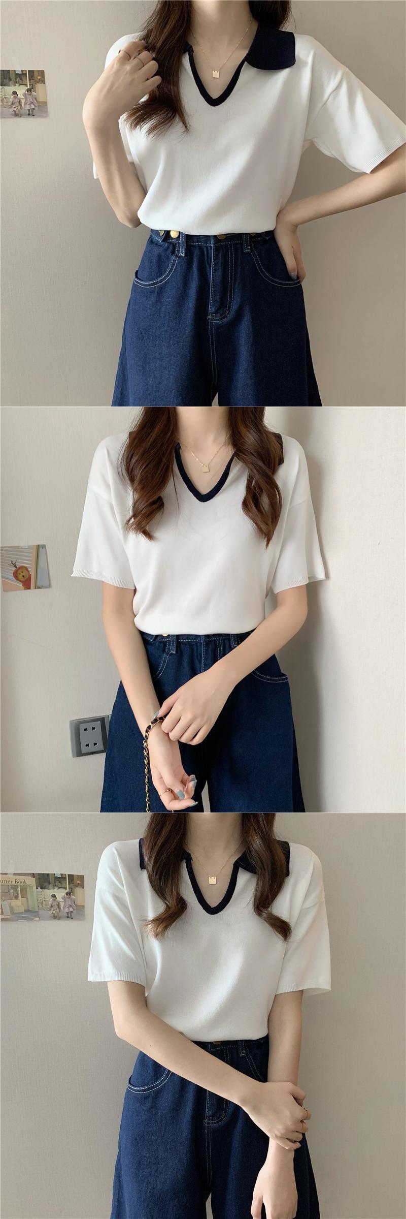 Vネックショートセーター サマー薄手ルーズホワイトトップス 夏物 1号婦人91577928133