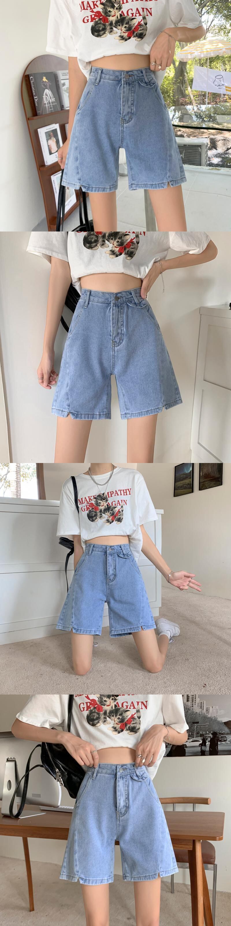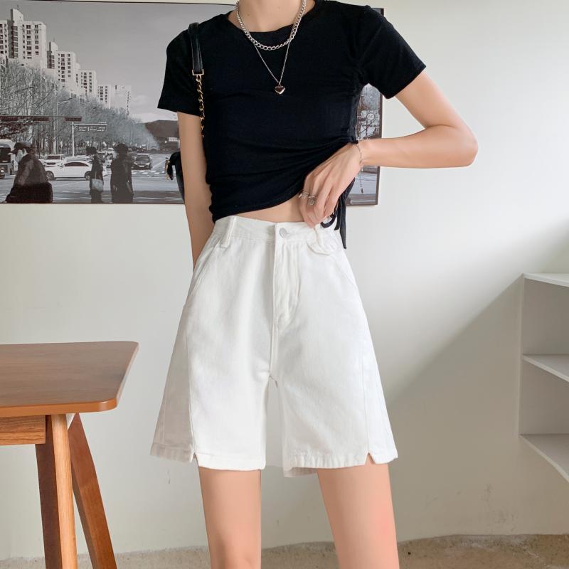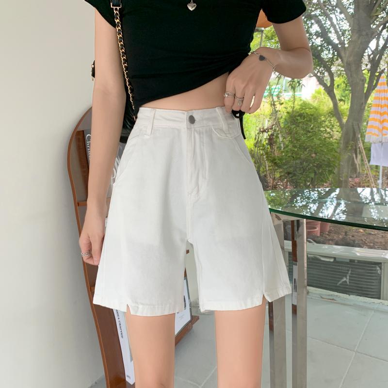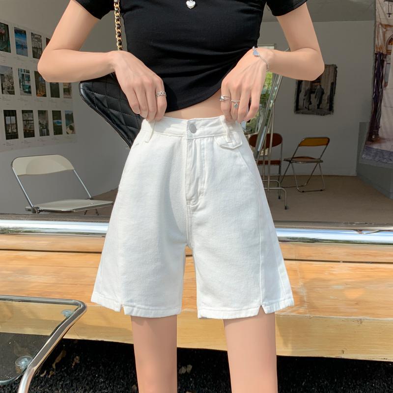 ジーンズ サマー薄手スリットハイウェストウェストパンツ ルーズホワイトショーツ 夏物 ブルマー 1号婦人26154542384