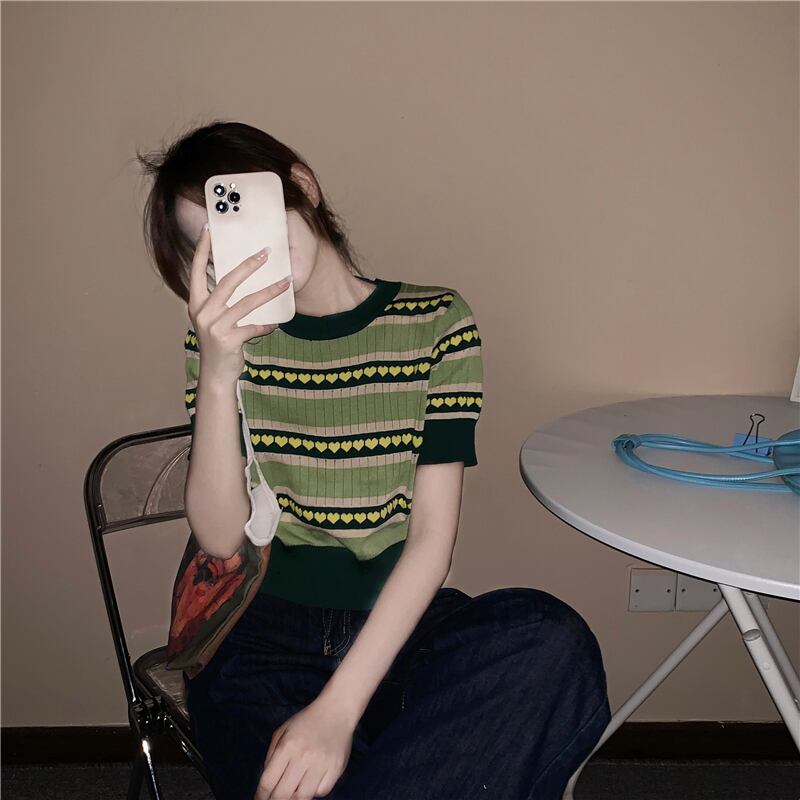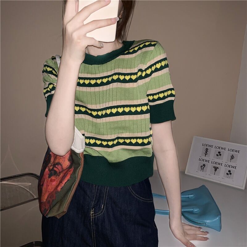 Tシャツ シャツ サマースリムショートニットトップス 夏物 1号婦人80384083769
