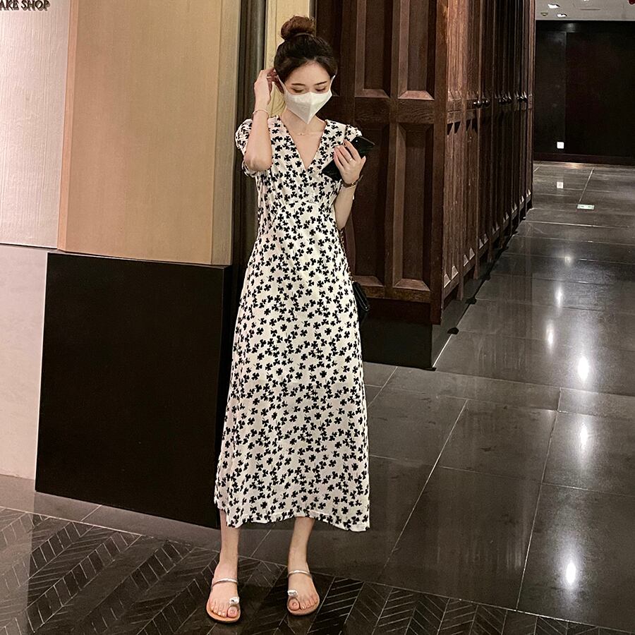 ドレス レディースサマー薄手ロングフローラルスリーブ 夏物 花柄 1号婦人50957319927