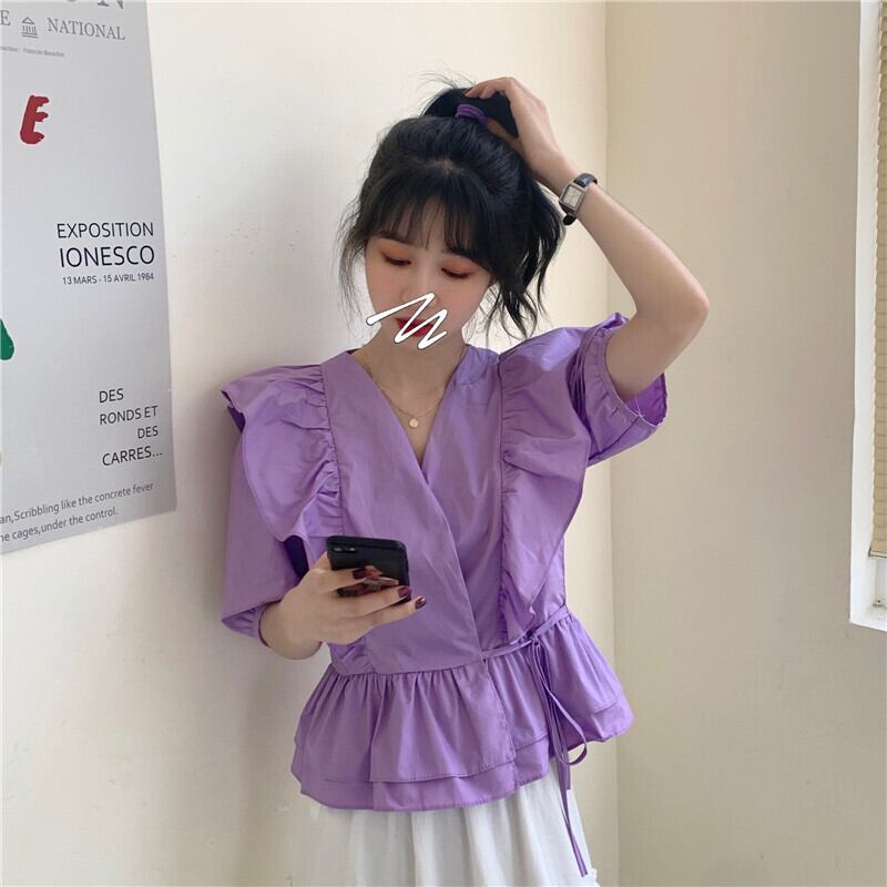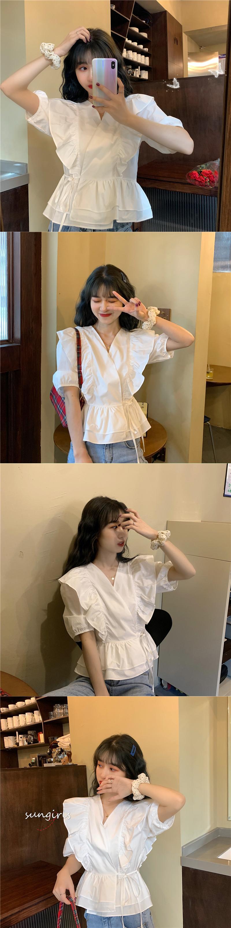 Vネックホワイトシャツ スプリングサマーウェストトップス 春物 夏物 1号婦人97318483758