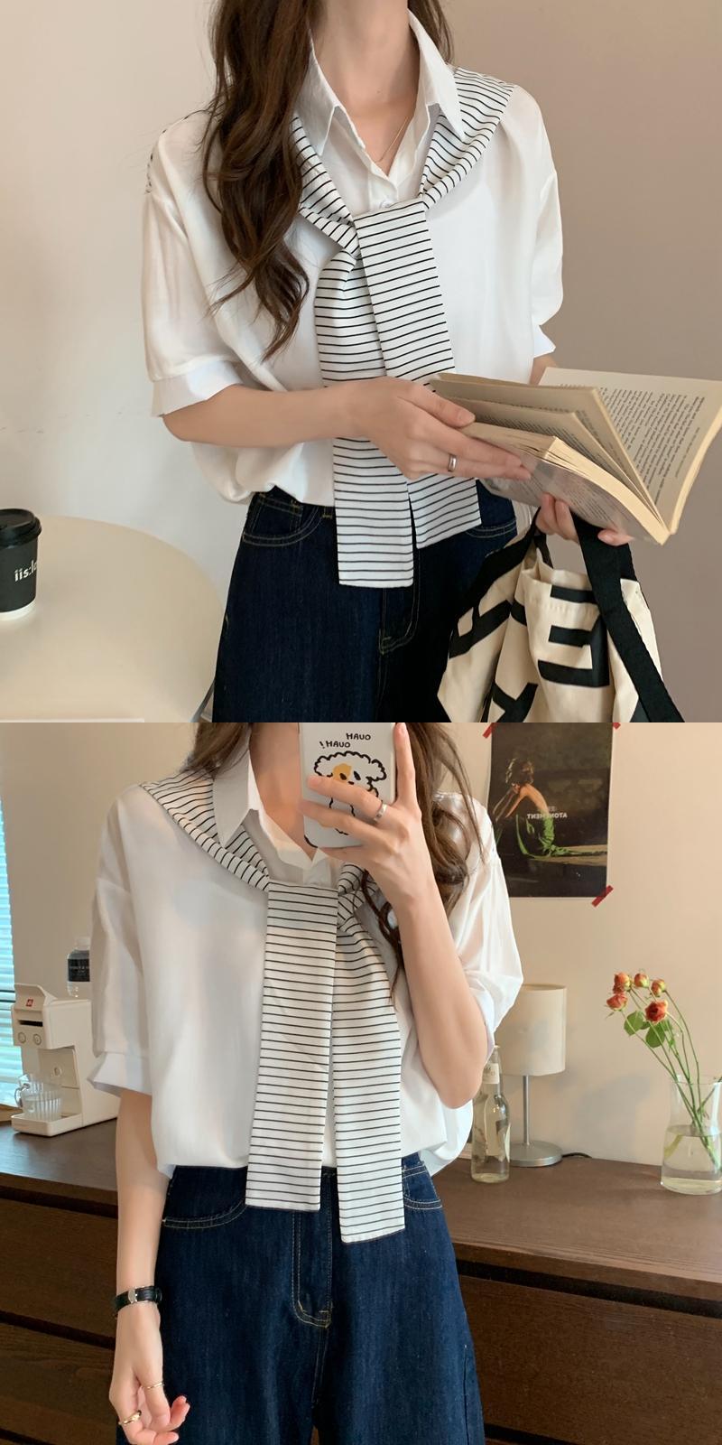 ホワイトシャツ スプリングオータムルーズスタイルトップス 春物 秋物 1号婦人7699151651
