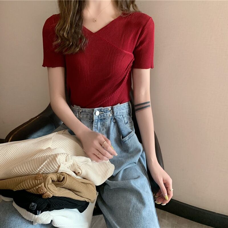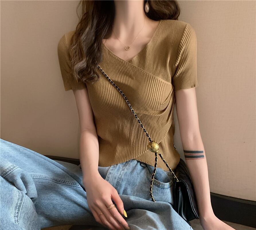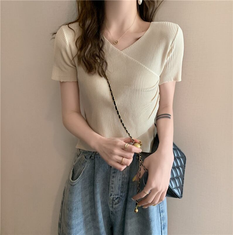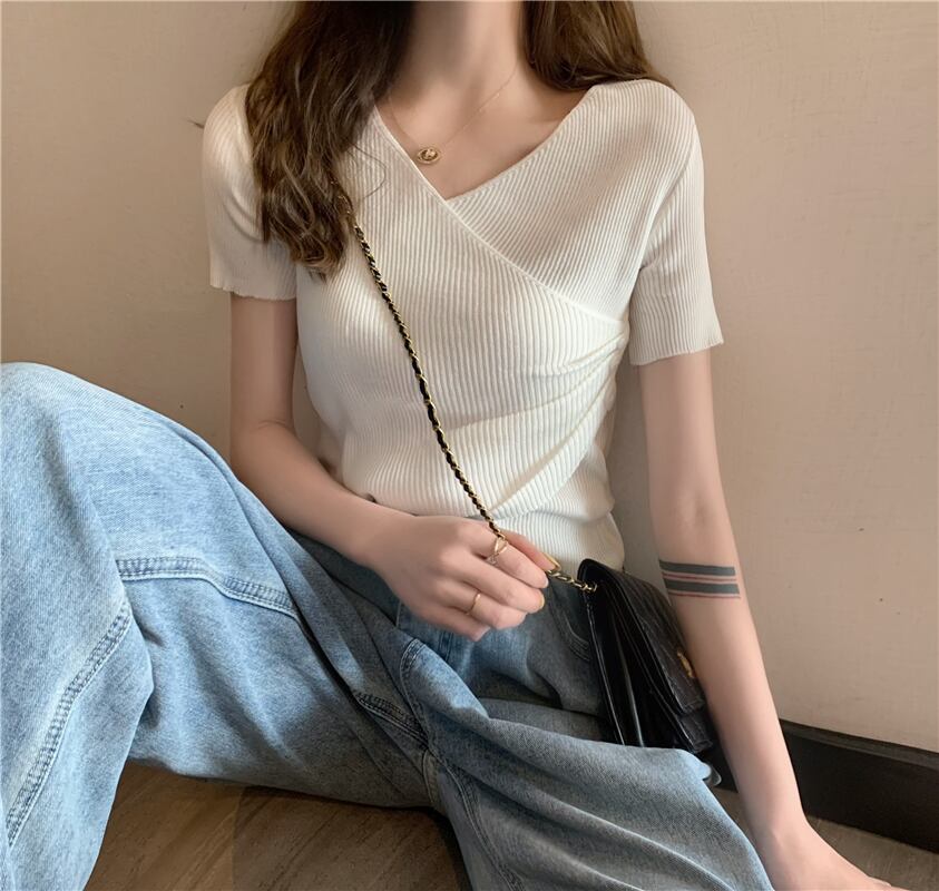 Tシャツ サマーホワイトショートニットトップス 夏物 1号婦人92117452727