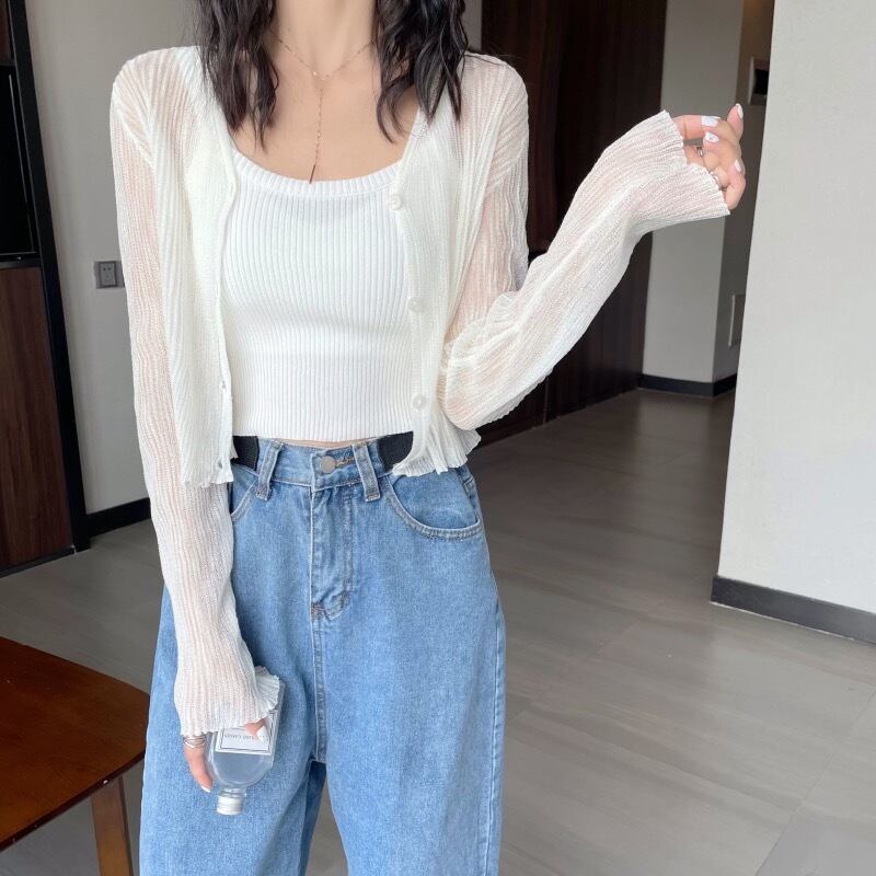 ニットセーター サマー薄手カーディガンルーズショートスタイルブラウス 夏物 シルク 1号婦人82087487129