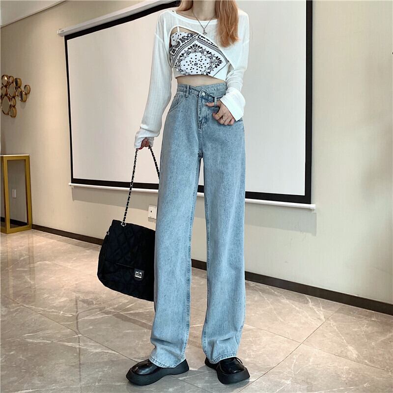 ジーンズ サマー薄手ハイウェストウェストワイドレッグパンツ 夏物 ワイドパンツ 1号婦人55078344344