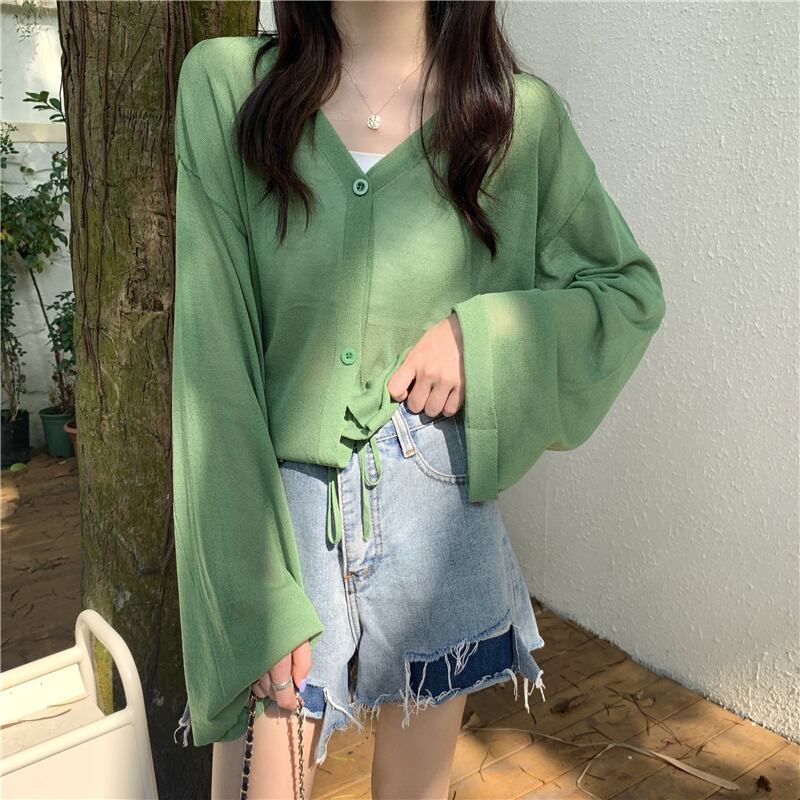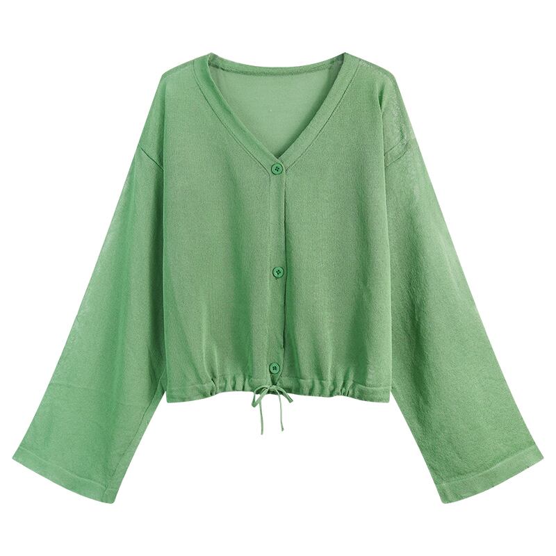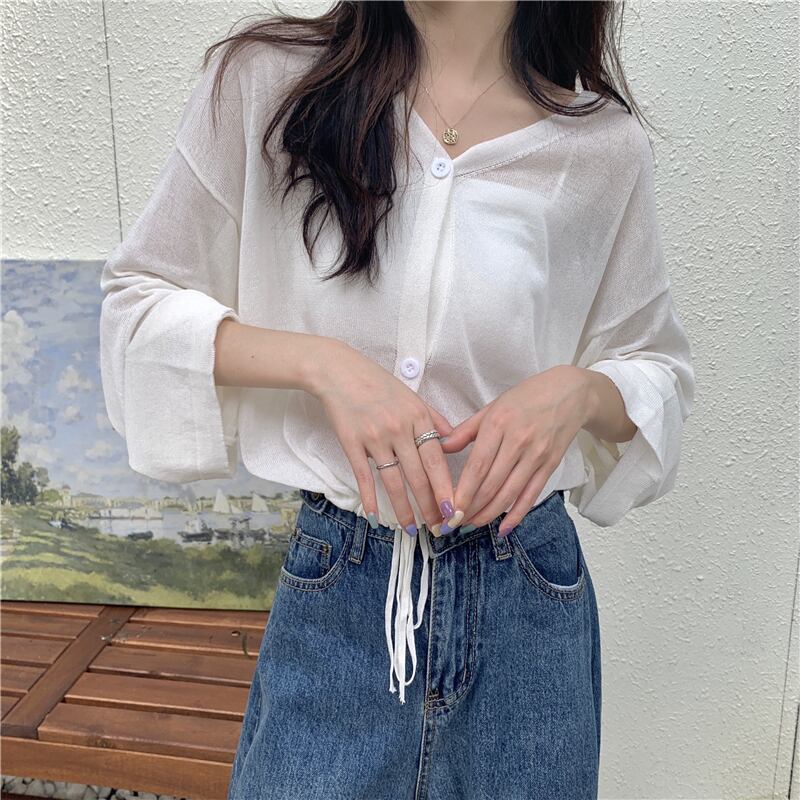 ホワイトサマー薄手ニットカーディガンブラウス ルーズジャケット トップス 夏物 1号婦人2496284188