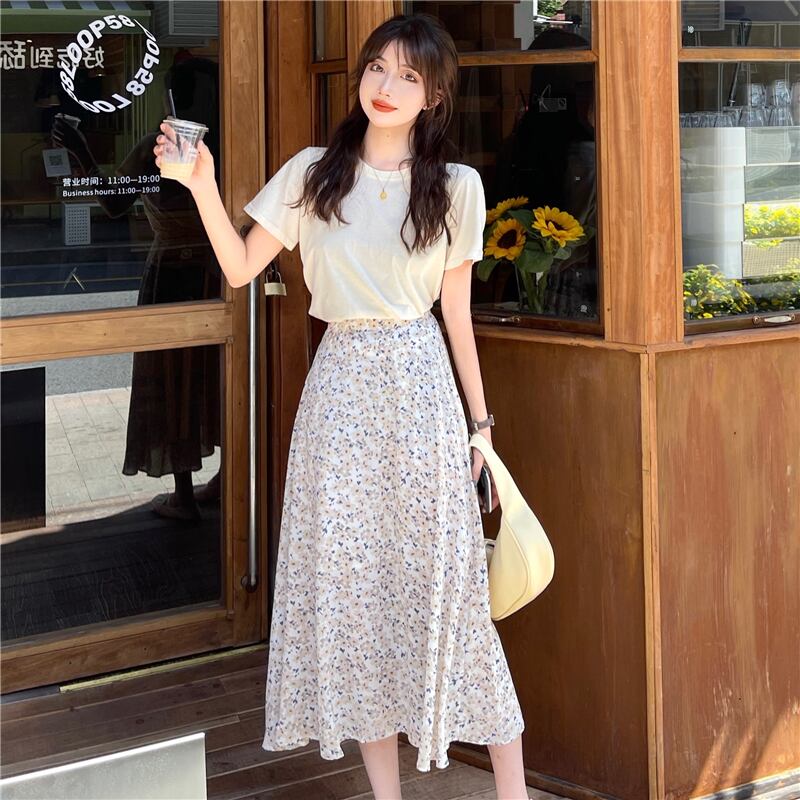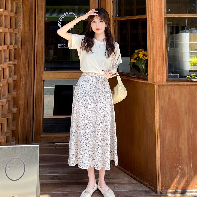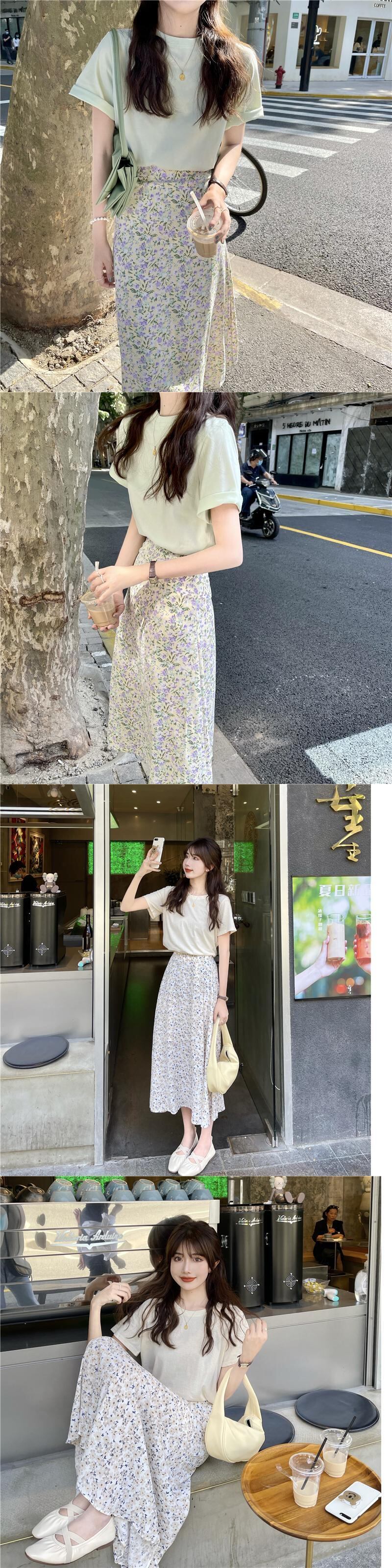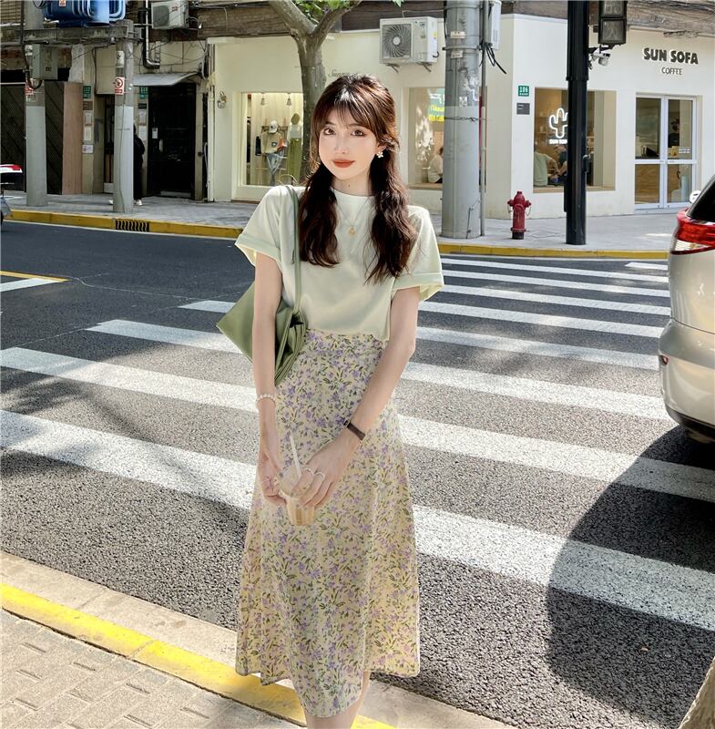 色:ライトグリーンT,牛乳アプリコットT,グリーンフローラルスカート,アプリコットフローラルスカート