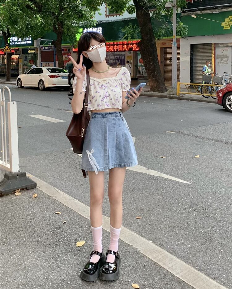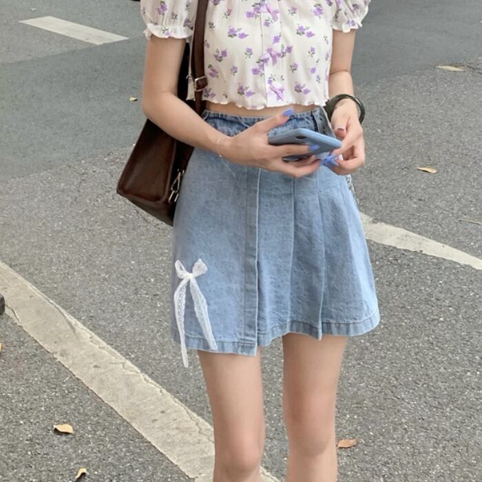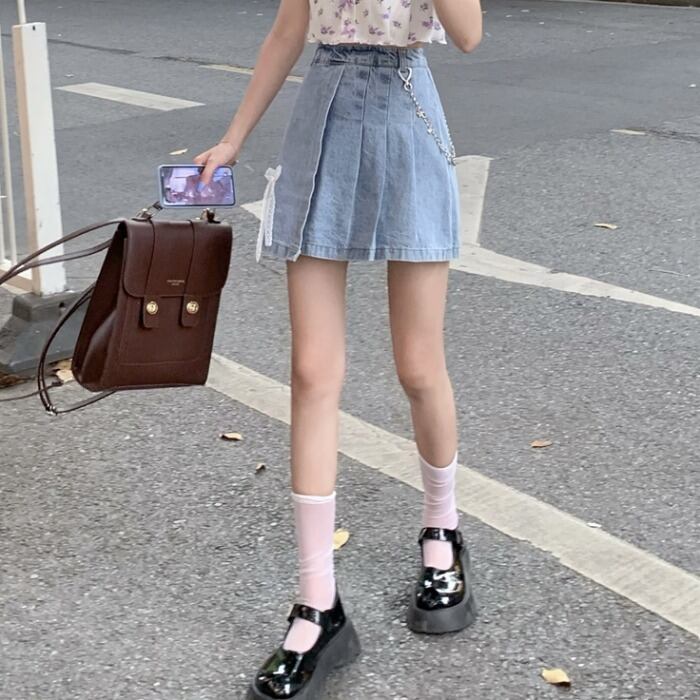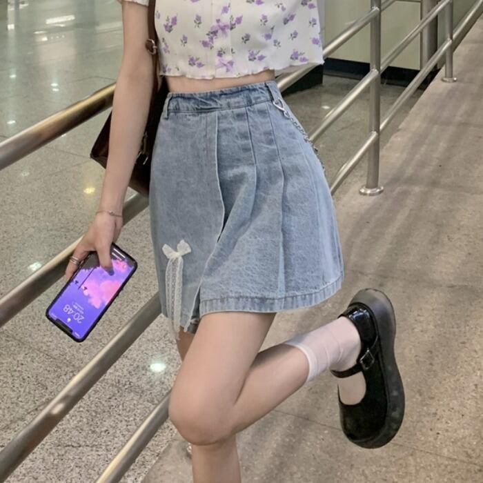 Aラインスカート サマー薄手ハイウェストウェストスリムリボンプリーツ 夏物 1号婦人8476004461