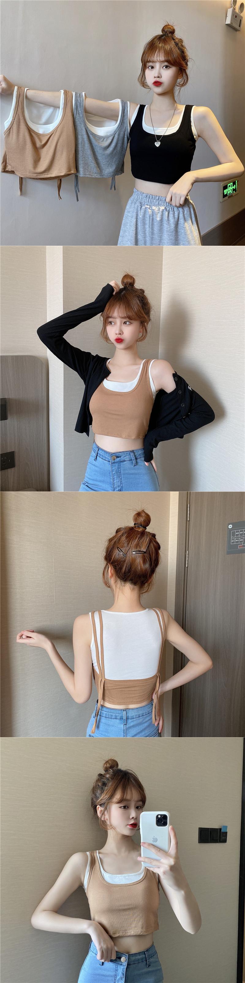レディースサマー薄手ノースリーブバックショートトップス 夏物 1号婦人80195846609