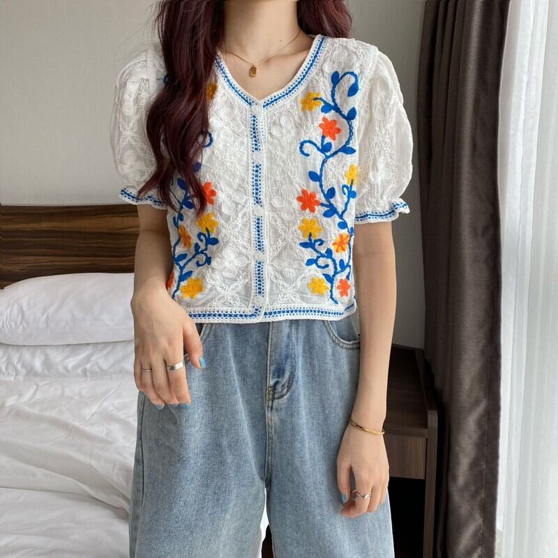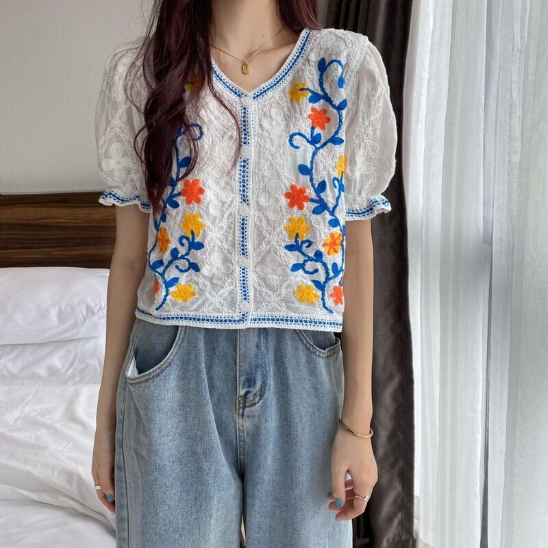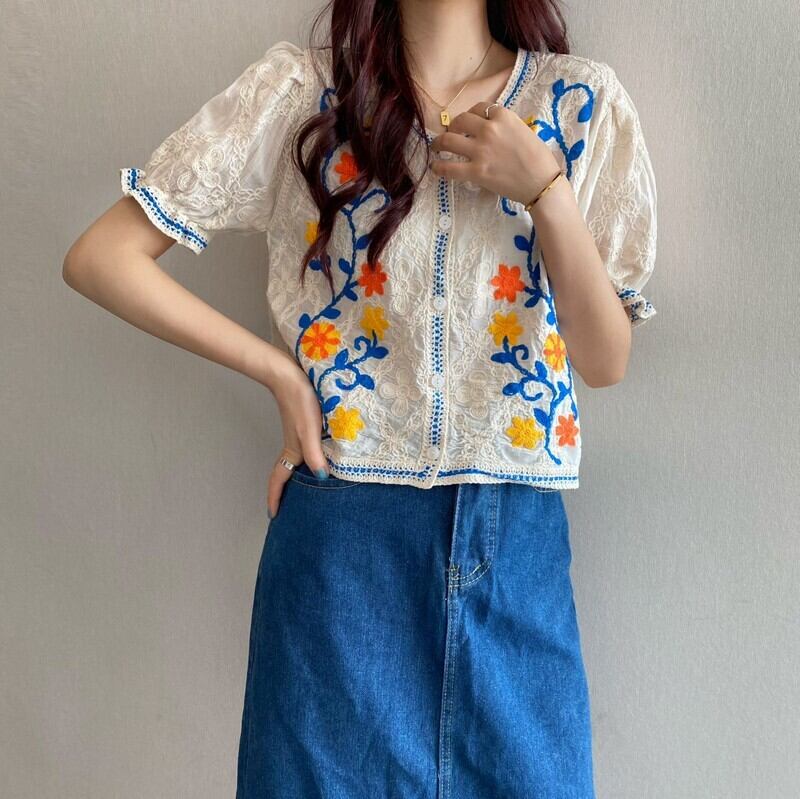 スタンダード刺繍ジャカードVネックセーター 薄手レディースサマースリーブカーディガントップス レトロ 夏物 1号婦人26725569886