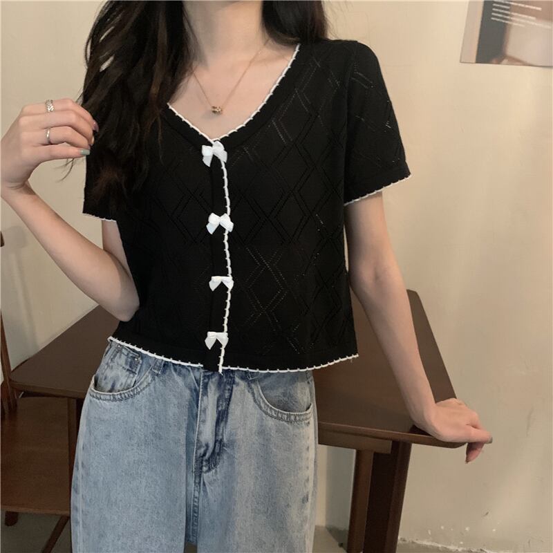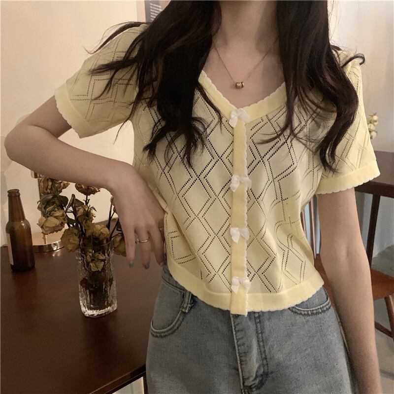 ホワイト薄手カーディガンサマーVネックルーズショートコート セーター 夏物 シルク 1号婦人33858616896