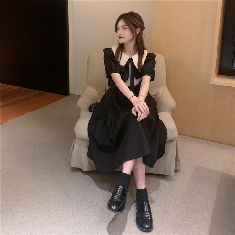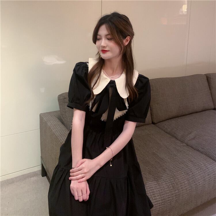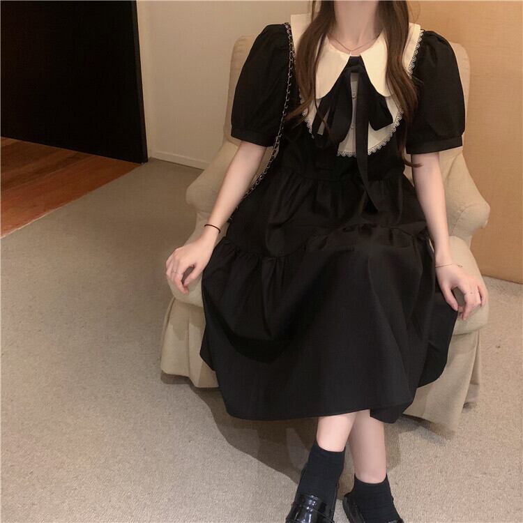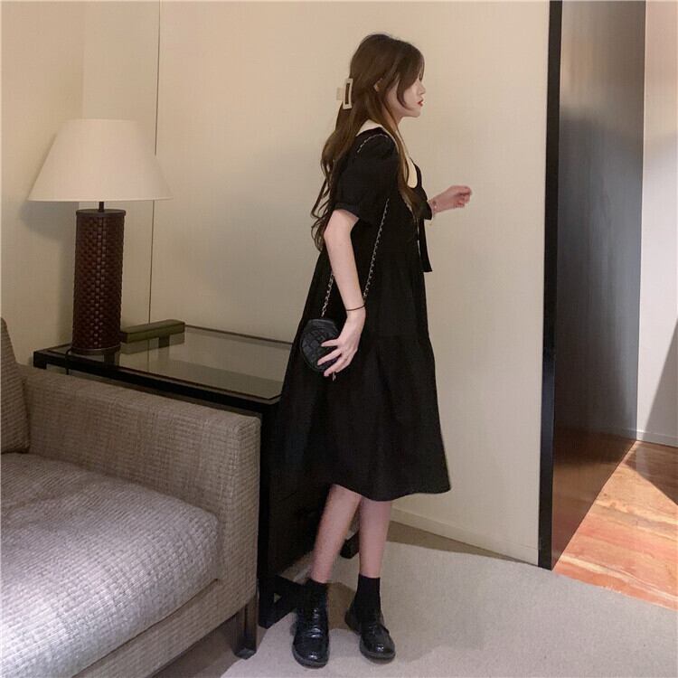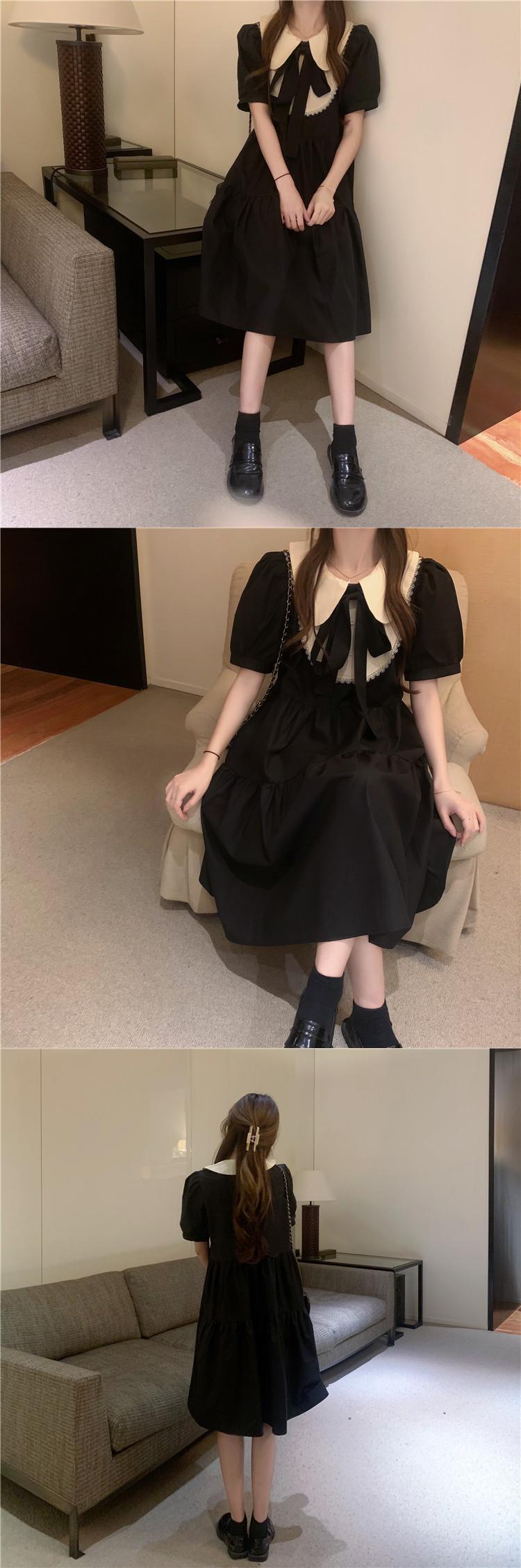 スリーブスカート サマードレス カラーウェストブラック 夏物 1号婦人15167568160